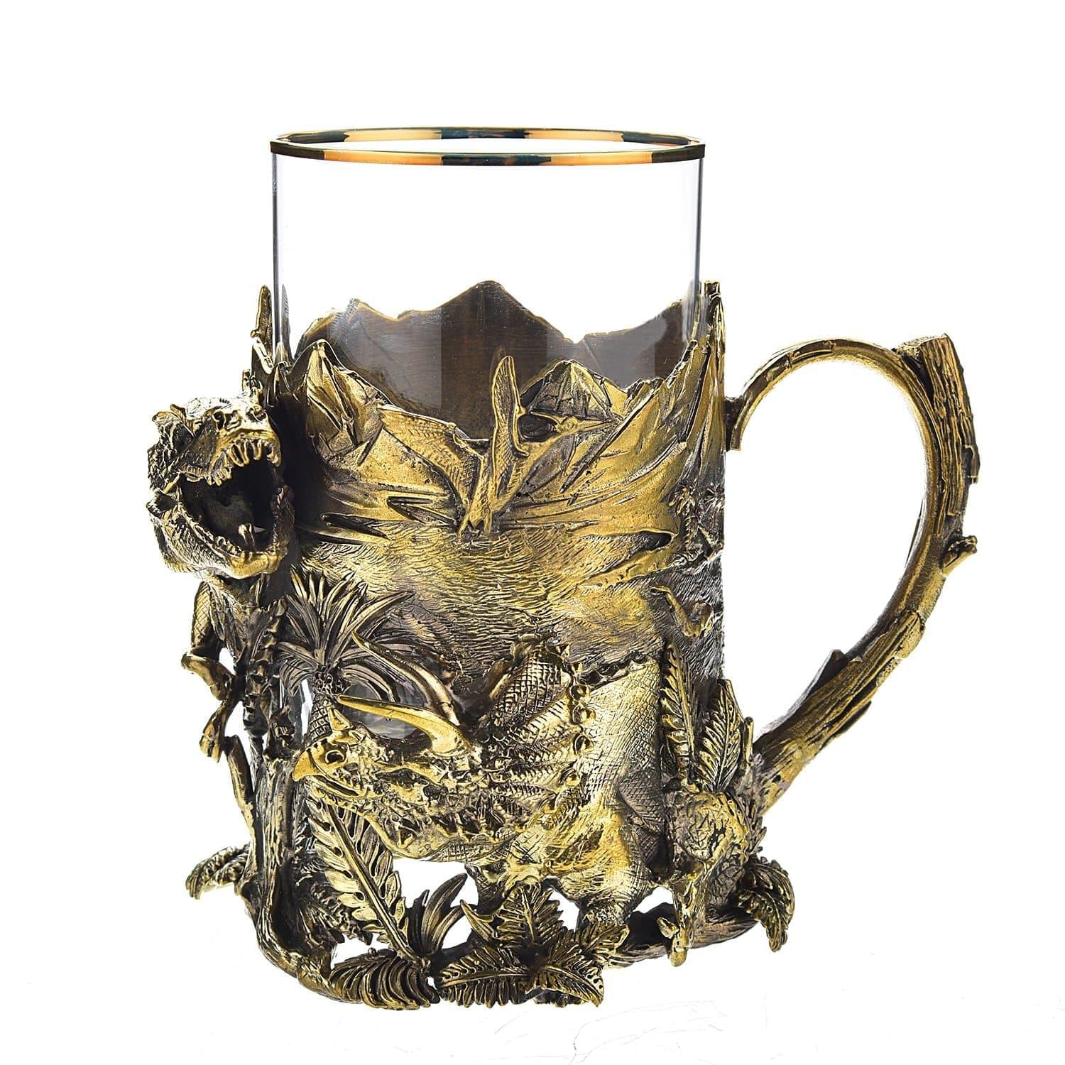Для удобства дарения мы предлагаем приобрести подарочную упаковку из нашего ассортимента. Авторская работа, подстаканник "Эра динозавров" латунный - это практичный вариант подарка для мужчины, любителя динозавров, задушевных посиделок на Свадьбу. День рождения, Юбилей, Новоселье, общий или личный праздник.
