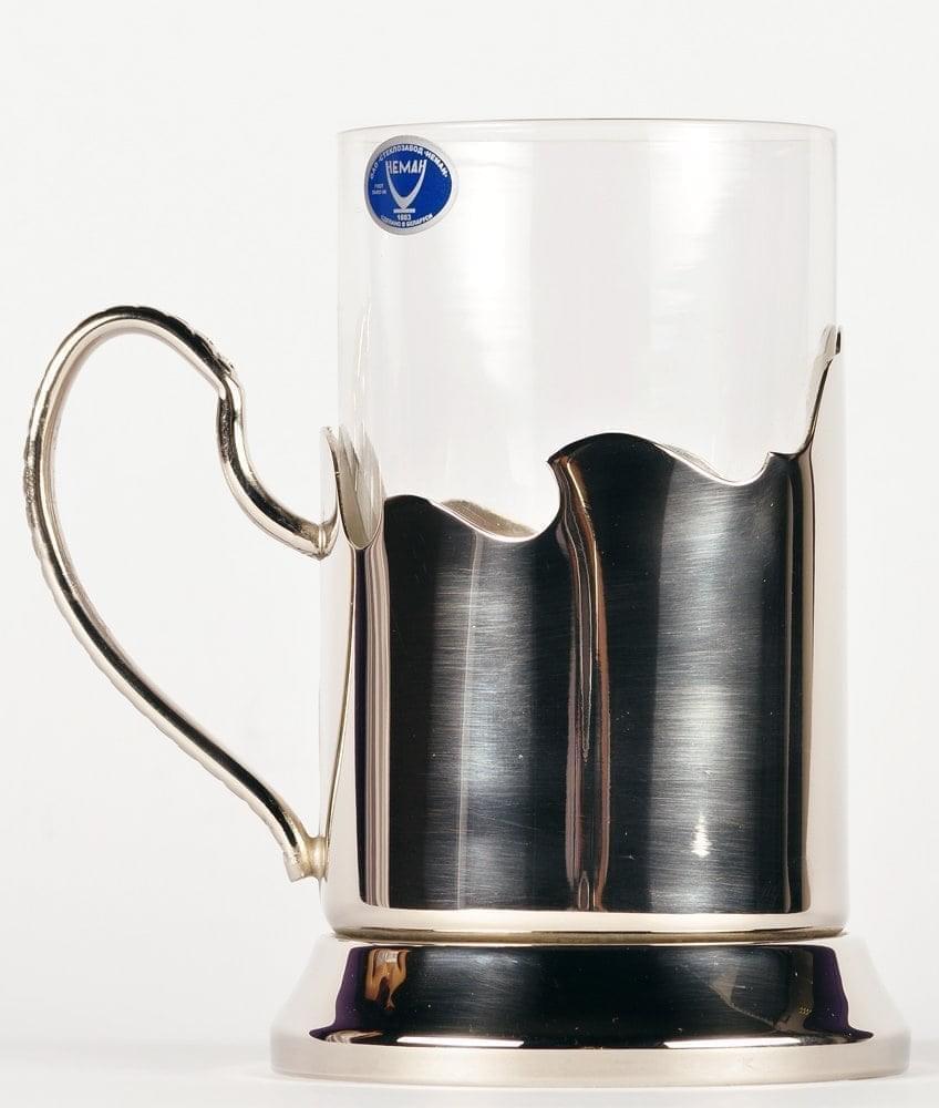 Сегодня подстаканник - это практичный образец посуды и функциональный интерьерный аксессуар. Подберем подарочную упаковку из нашего ассортимента. Авторская работа, подстаканник никелированный для Вашего логотипа со стаканом из хрусталя - это практичный вариант универсального подарка для ветерана, военного на Свадьбу. День рождения, Новоселье, общий или личный праздник.