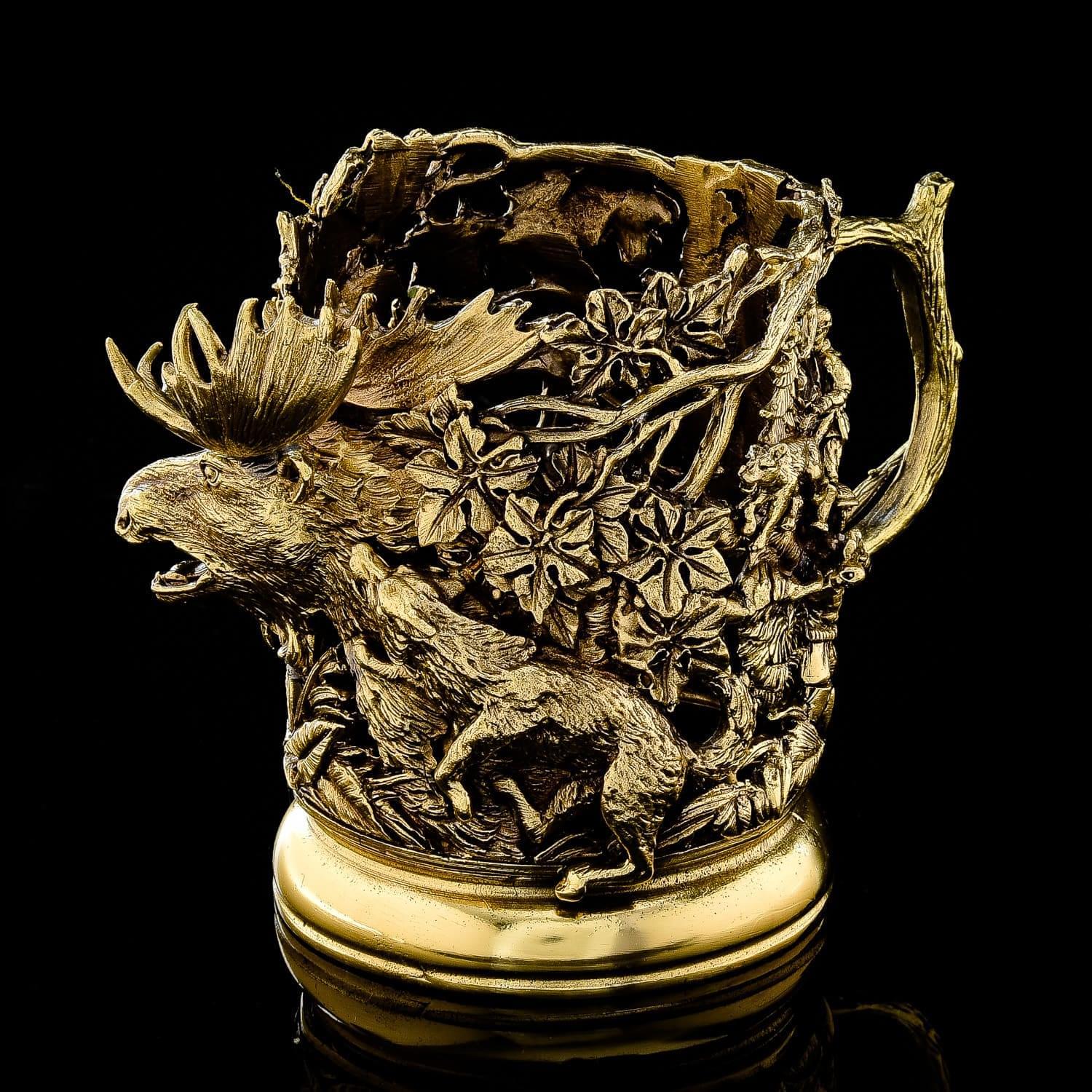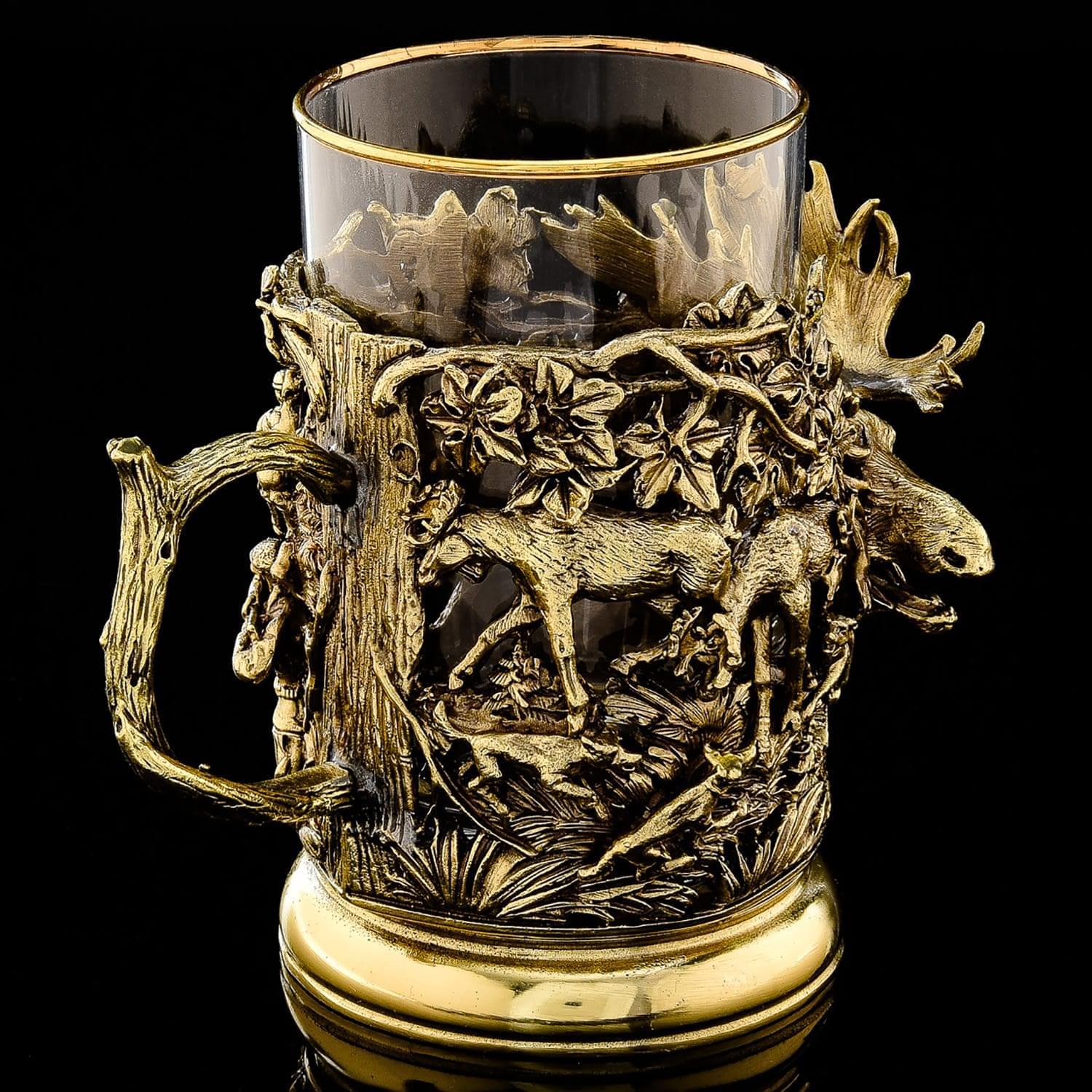 Сегодня подстаканник - это практичный образец посуды, вариант сувенира в русском стиле и функциональный интерьерный аксессуар. Для удобства дарения мы предлагаем Вам выбрать красивую подарочную упаковку из ассортимента. Авторская работа, подстаканник "Охота на лося" 3D - это практичный вариант универсального подарка для мужчины, охотника на общий или личный праздник.