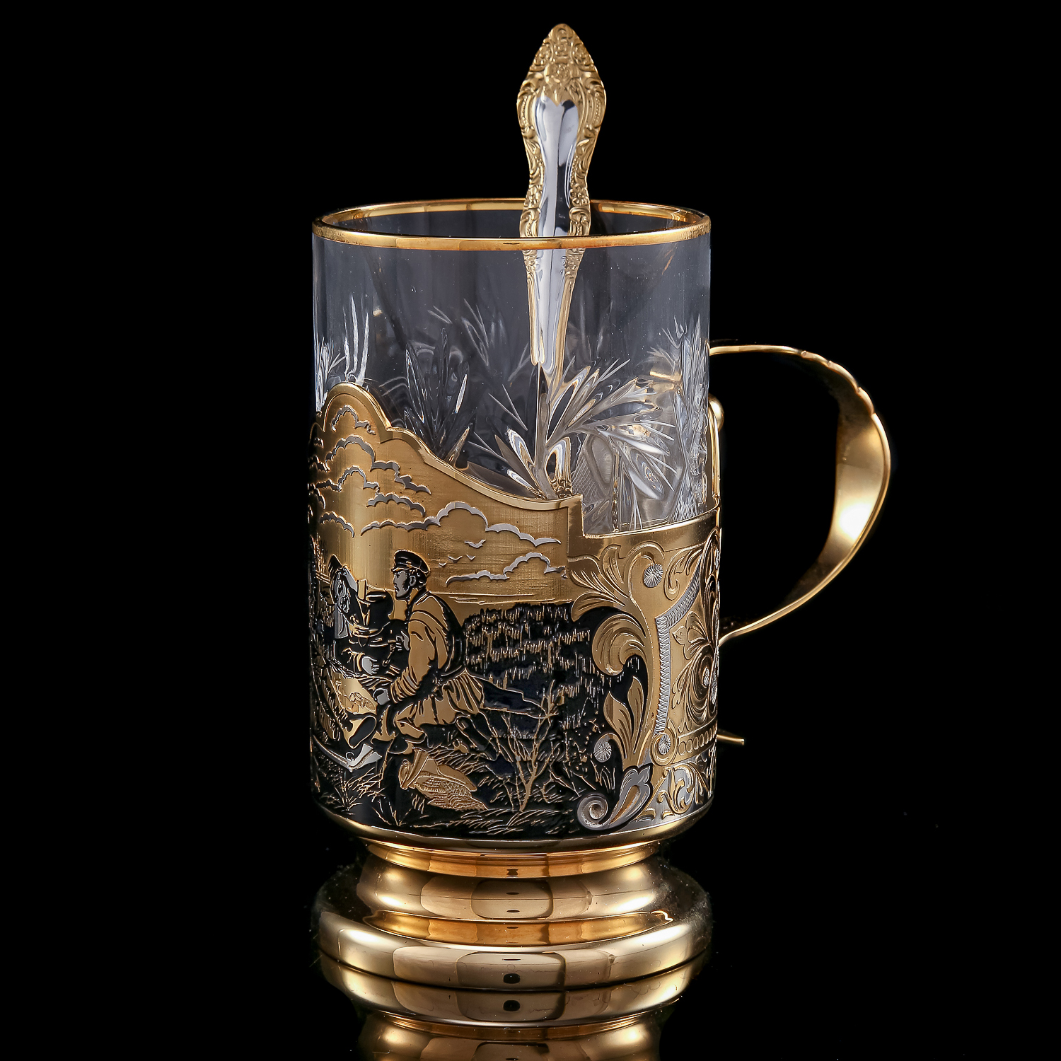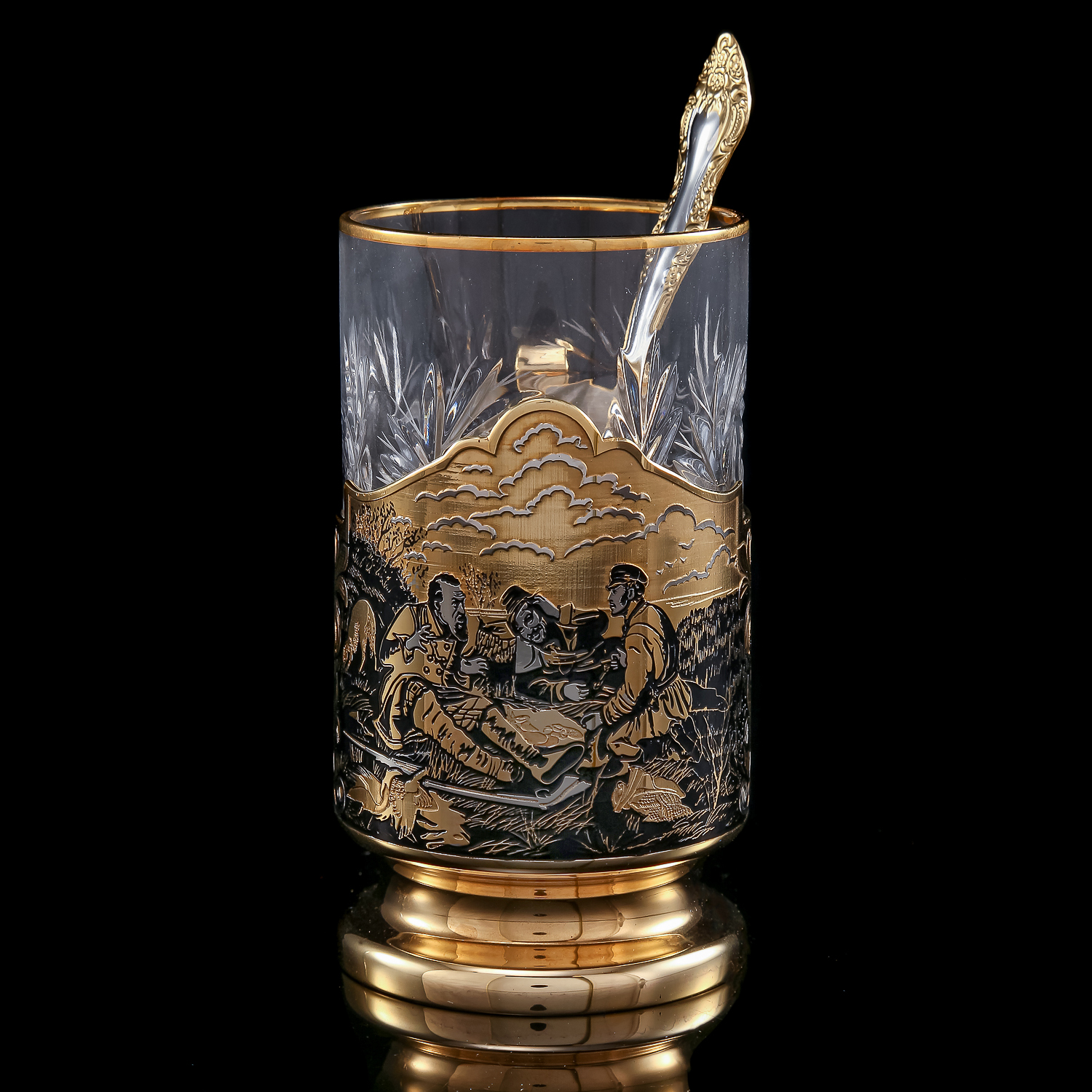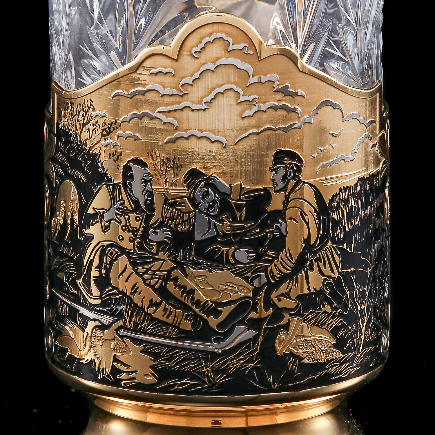 Подстаканник "Охотники на привале". Златоуст.