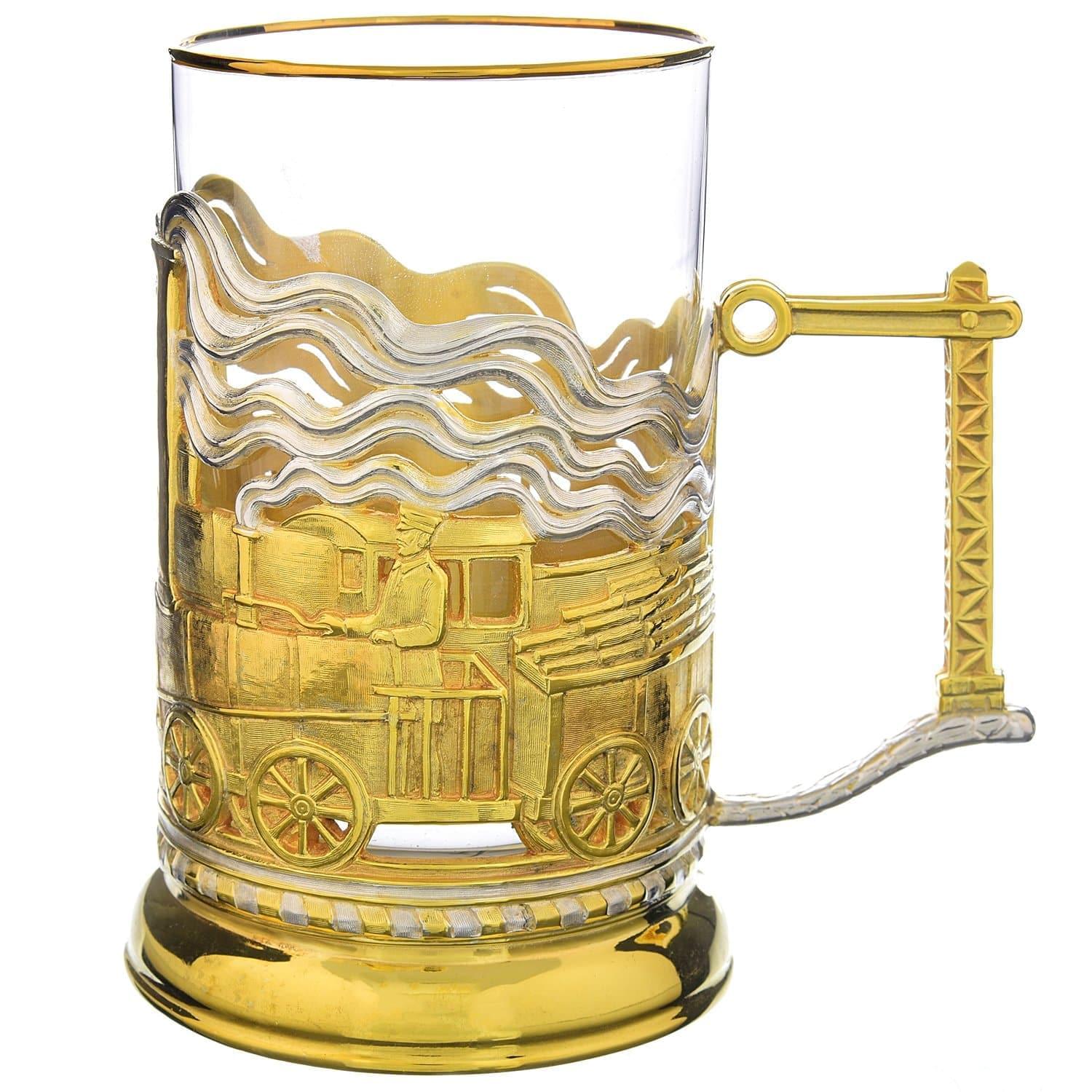 Дизайн русского подстаканника прост и понятен: в металлическую подставку с ручкой вставляется прозрачный стакан.