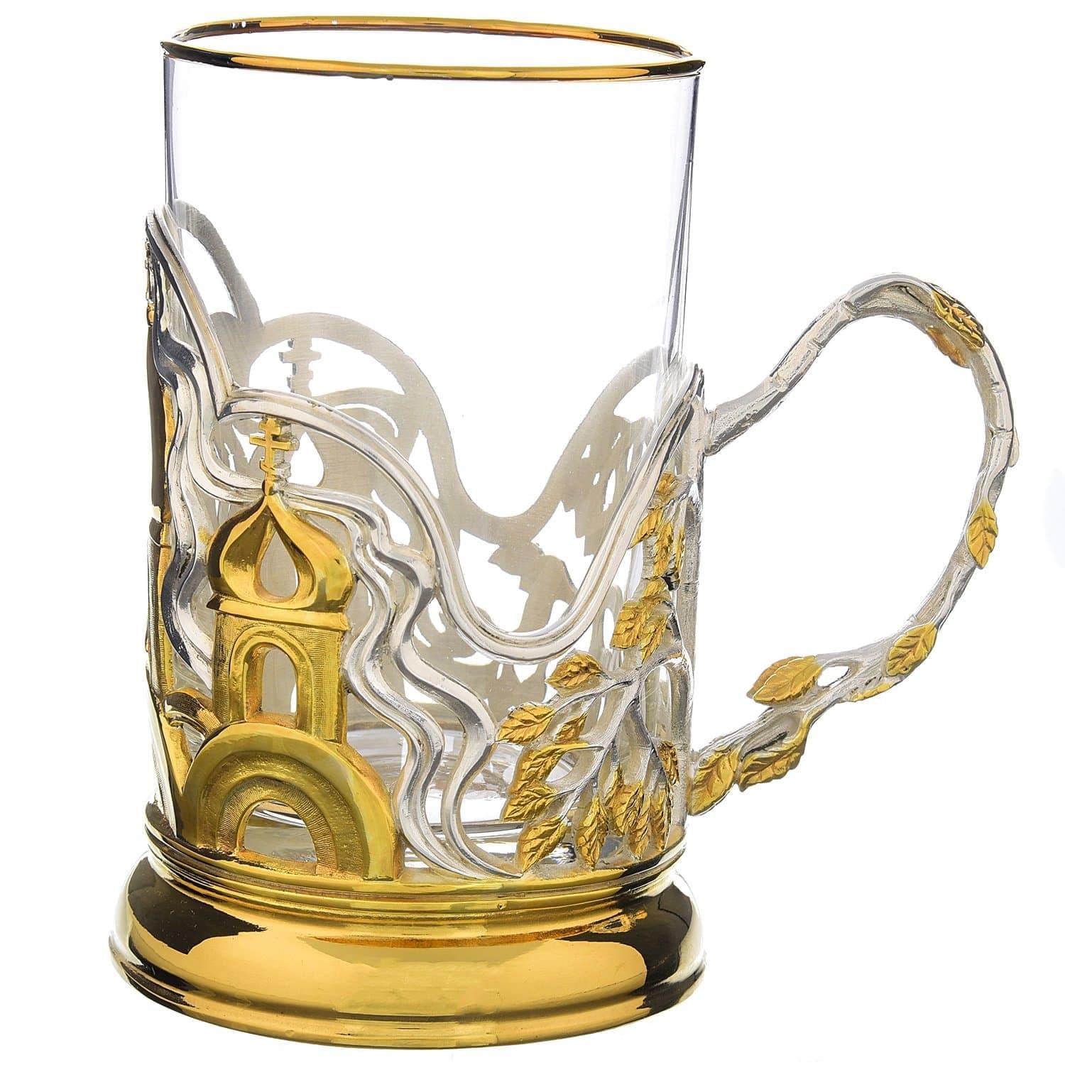 Идеальный вариант практичного подарка для православного верующего. Дизайн русского подстаканника прост и понятен: в металлическую подставку с ручкой вставляется прозрачный стакан. А вот оформление этой подставки из металла интерпретируется российскими мастерами художественного литья каждый раз по-новому. На "тулове" предлагаемого подстаканника изображены золотые купола и колокола - символа русской веры.