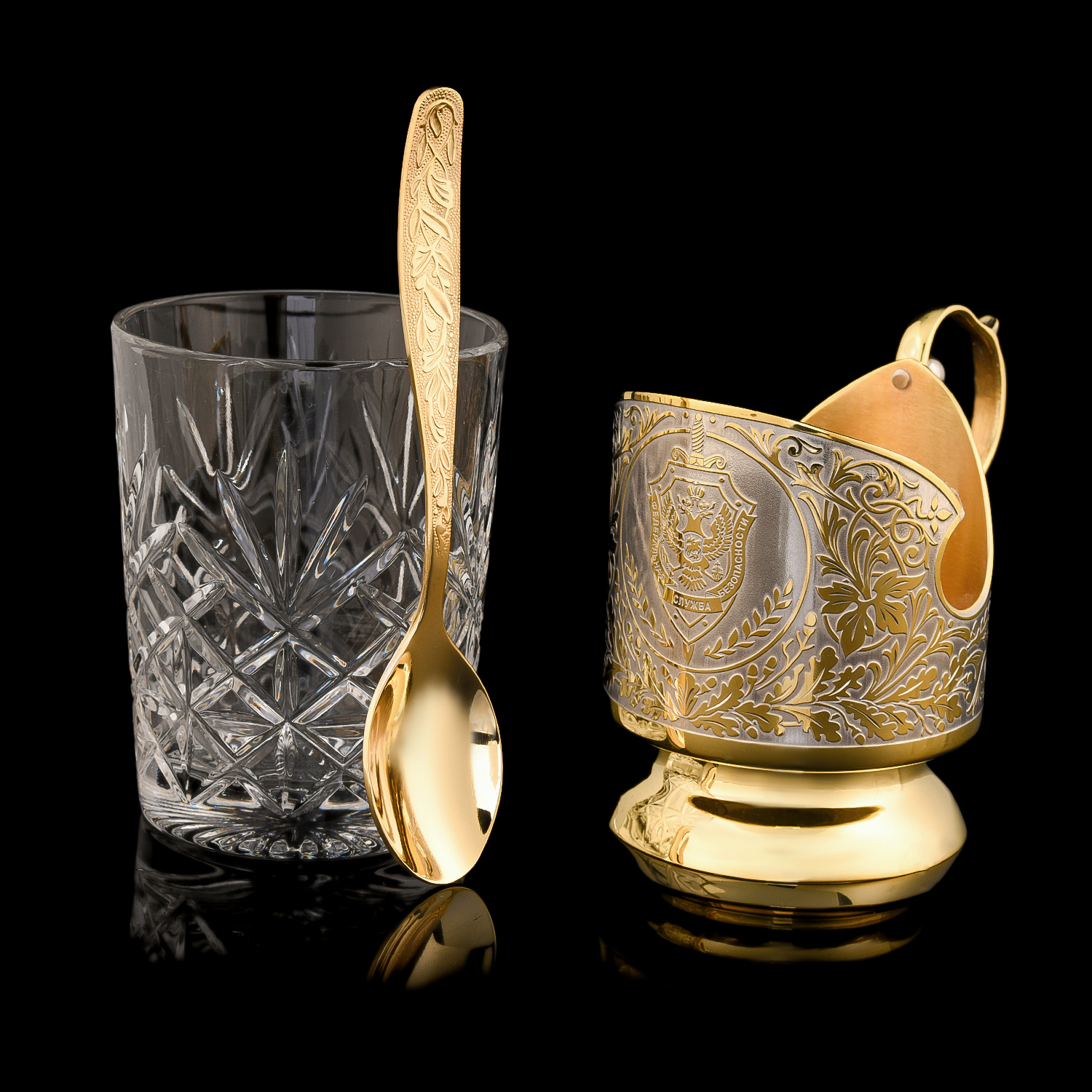 Подстаканник с ложечкой "Герб ФСБ". Златоуст.