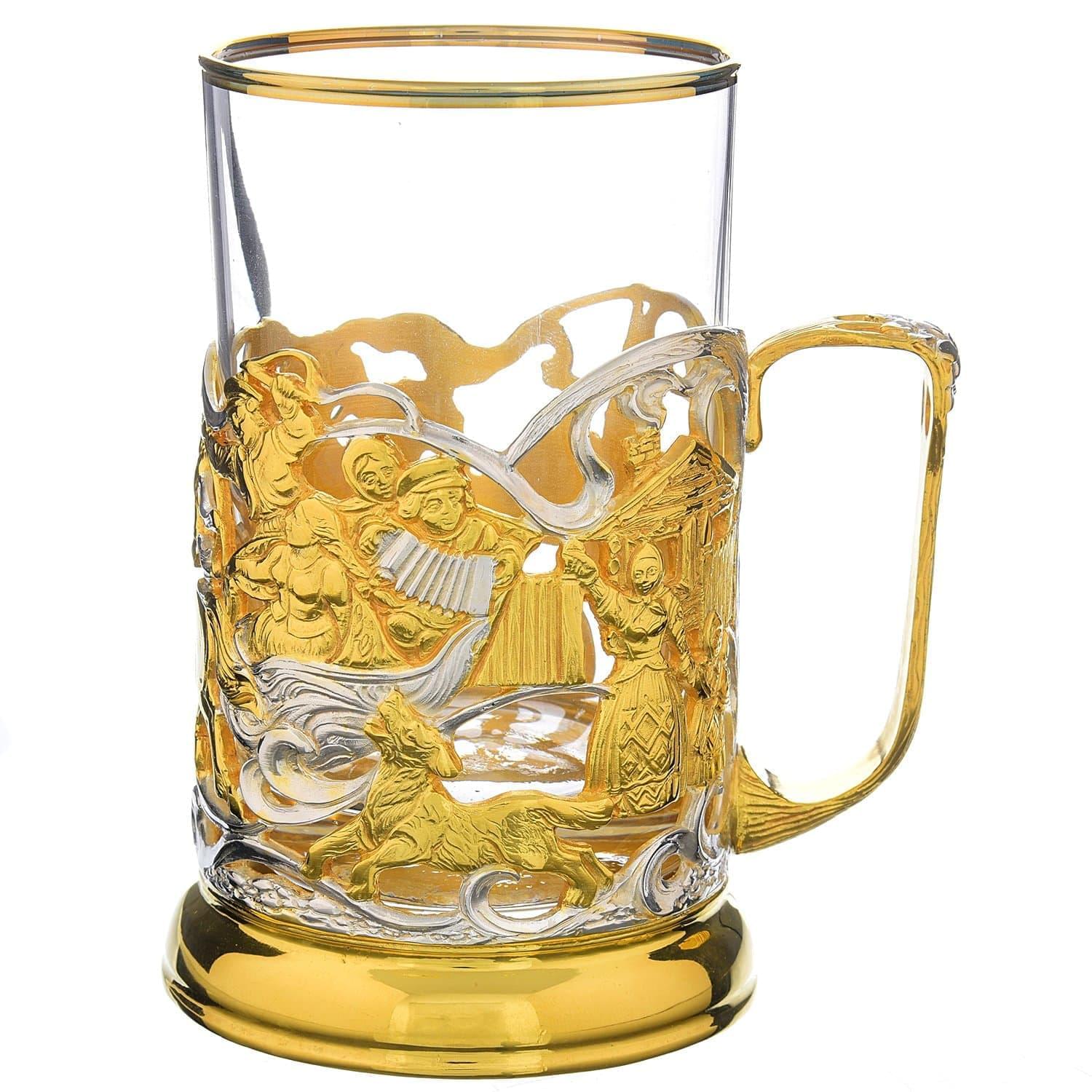 На корпусе подстаканника - образ летящей тройки, один из символов России и ее пути. Помните?