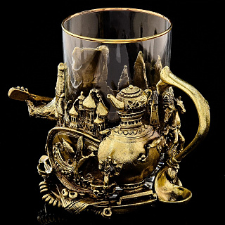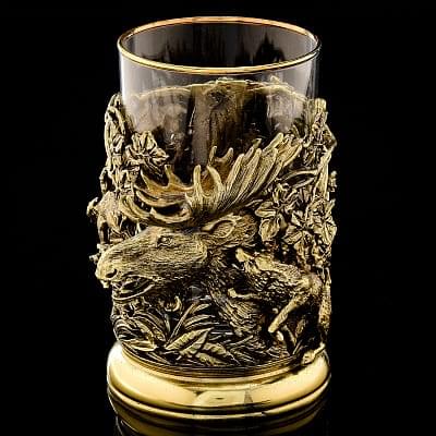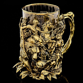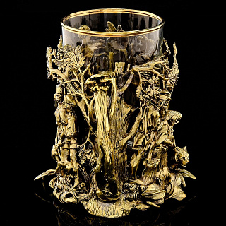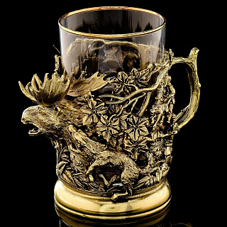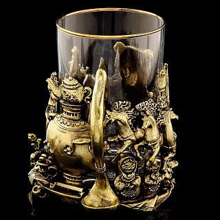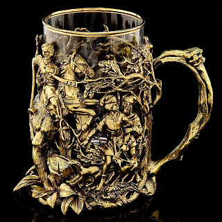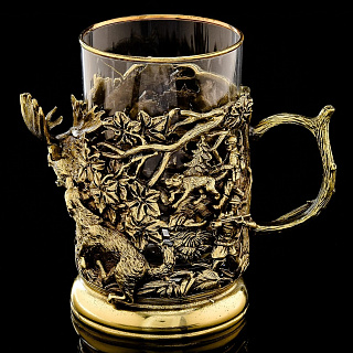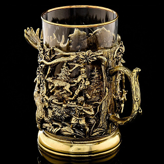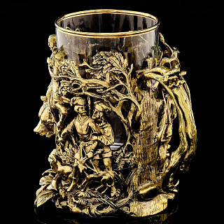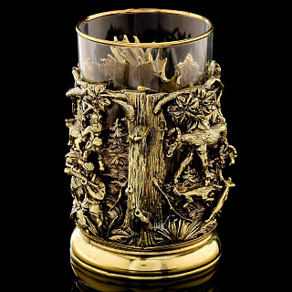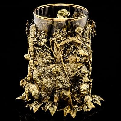 Подстаканник латунный с добавлением бронзы «Охота на кабана»