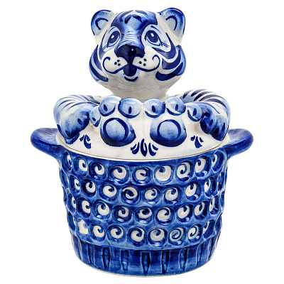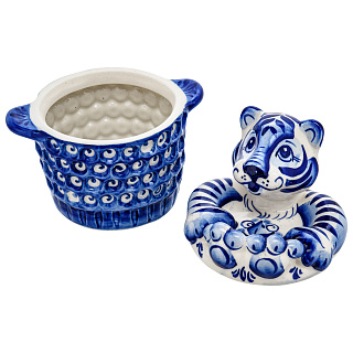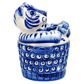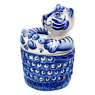 Шкатулка-сахарница «Пчелка на мешке». Гжель