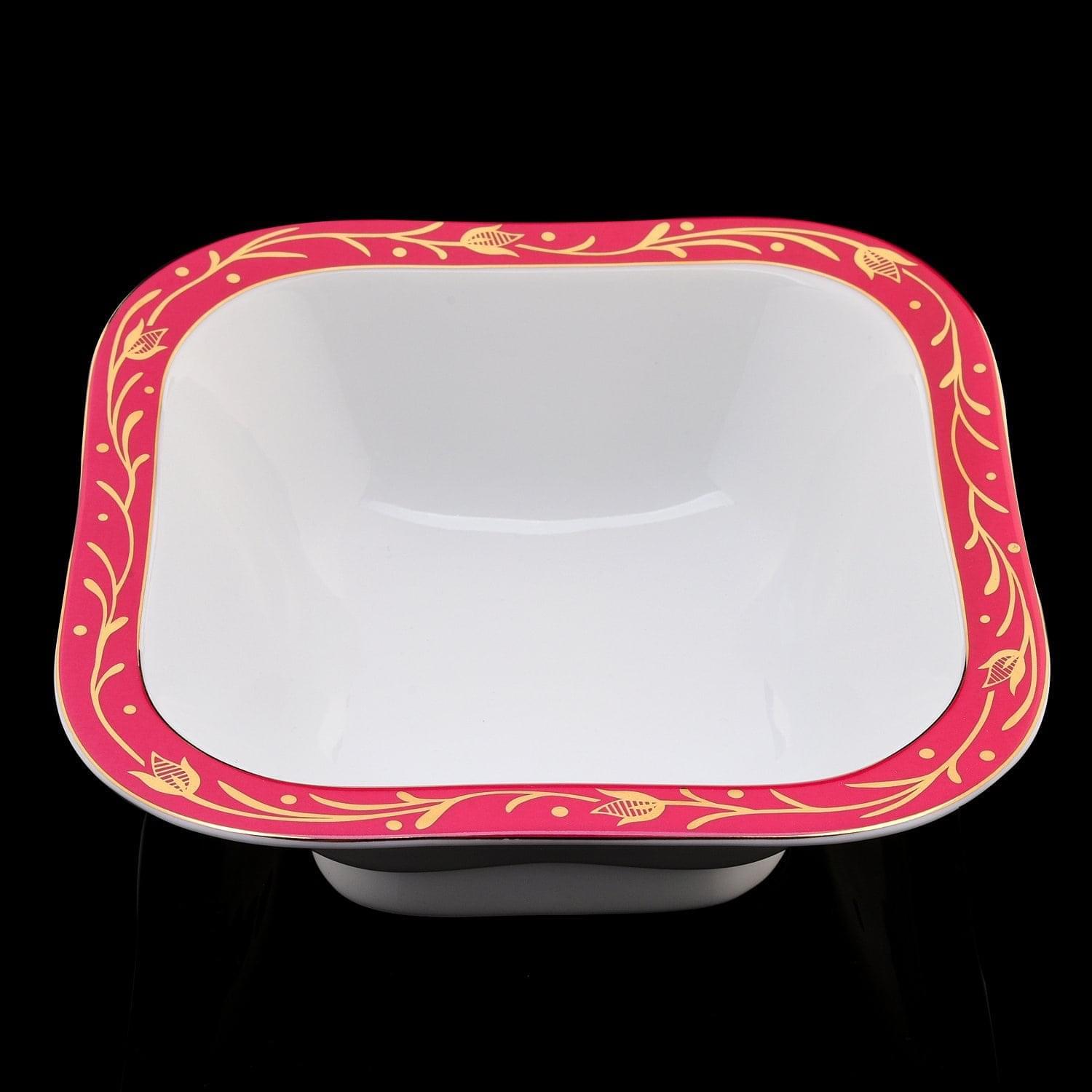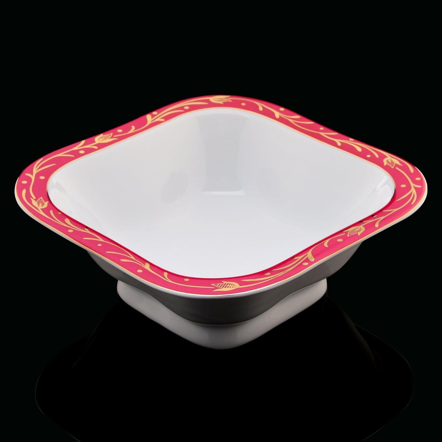 Салатник сделан из «русского белого золота», твердого фарфора в соответствии с формой «Молодежная 2». Борт салатника оформлен краской цвета фуксии. Роспись глазурирована. Для декора борта поверх глазури использована стойкая краска на основе золота. За одноименный чайный сервиз Императорский фарфоровый завод получил приз «Гордость Отечества» на Всероссийском конкурсе в области качестве «100 лучших товаров России 2016». В 1958 году роспись «Кобальтовая сетка», которую придумала художница Анна Яцкевич, получила золотую медаль на международной выставке в Брюсселе. Уникальная рецептура каждого сорта фарфора разработана ученым Дмитрием Виноградовым еще в 18 веке для Елизаветинской порцелиновой мануфактуры, так раньше назывался Императорский фарфоровый завод. Роспись исполнена в подглазурных и надглазурных техниках, а также «деколь», которая предполагает нанесение рисунка на поверхность фарфора с листа бумаги.