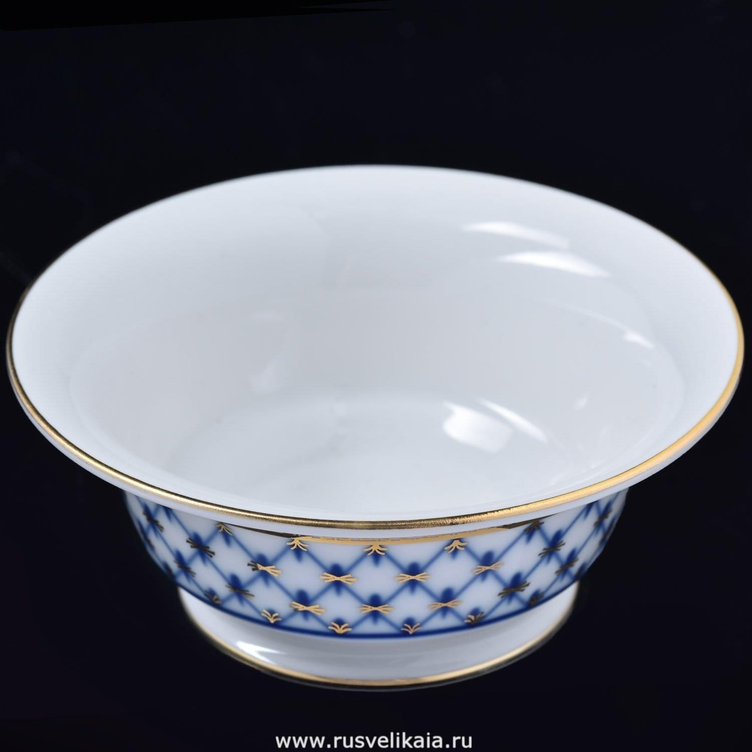 Компактный и очень красивый салатник из высококачественного фарфора - ручная работа мастеров со старейшего российского предприятия - Императорского фарфорового завода. Салатник изготовлен в соответствии с проверенными временем методами производства. Изделие входит в одну из самых известных коллекций завода - "Кобальтовая сетка". Декор работы выполнен вручную с использованием золота. Роспись нанесена в технике подглазурного кобальта. Красивый салатник - хороший вариант памятного подарка хозяйке, уделяющей внимание даже мельчайшим деталям сервировки стола.