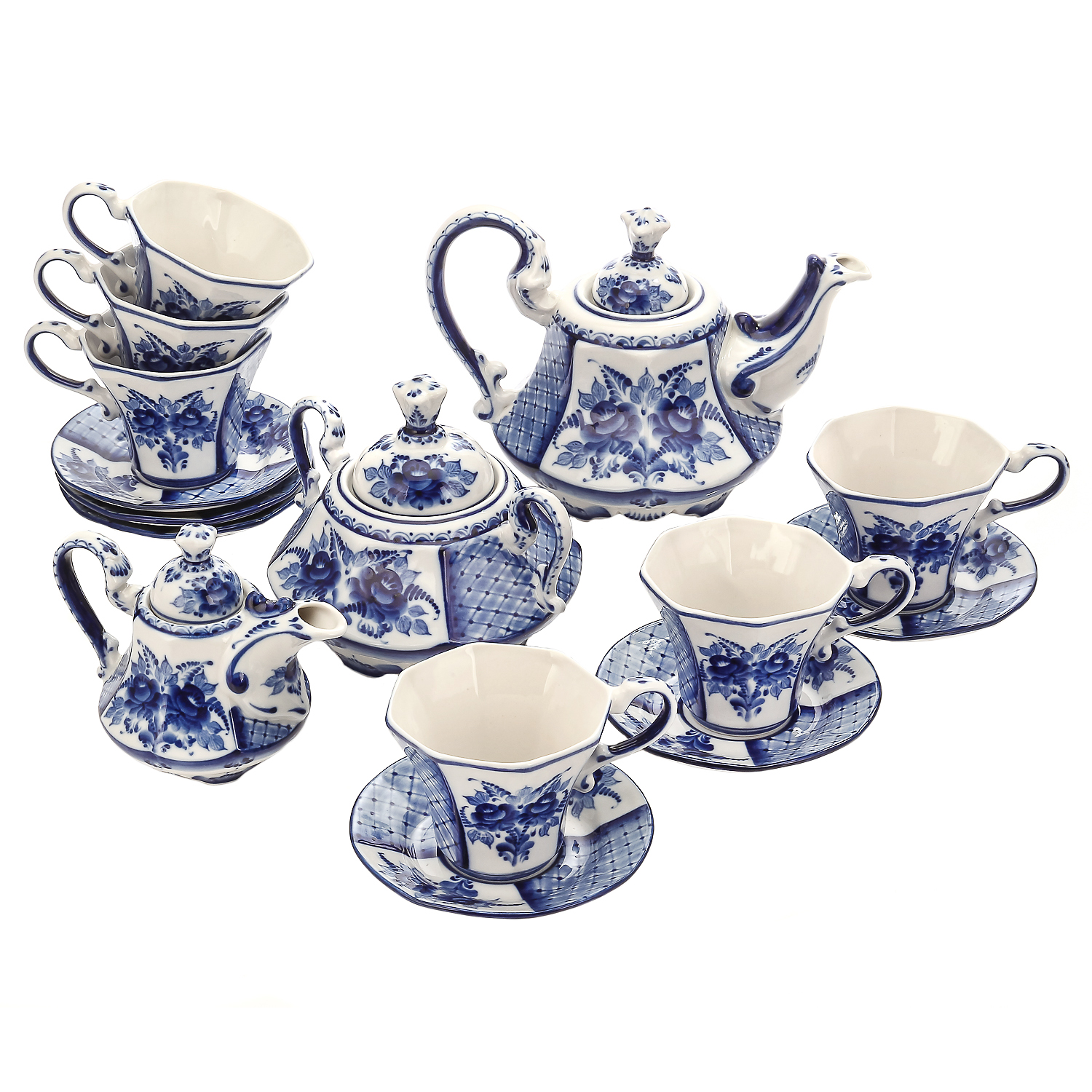 Чайный сервиз на 6 персон "Грань". Гжель.