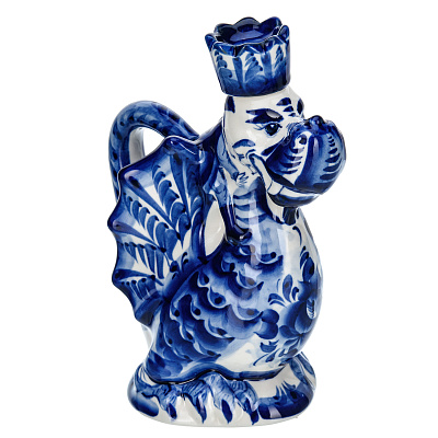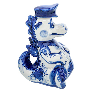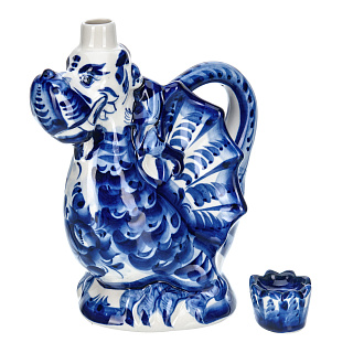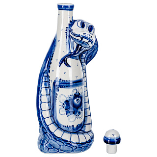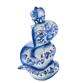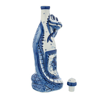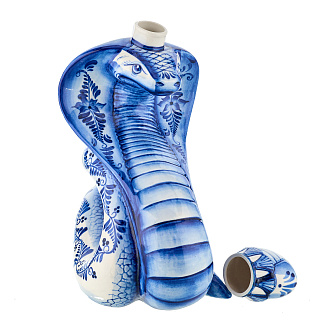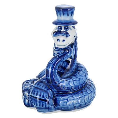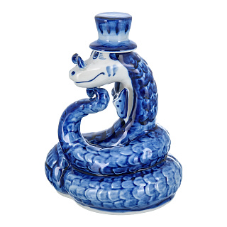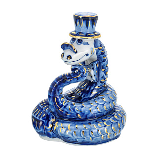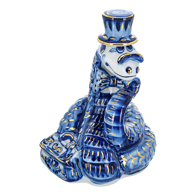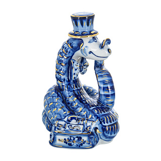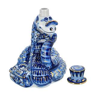 Змея Символ года 2025. Штоф «Змей Мудрый Каа». Гжель в золоте