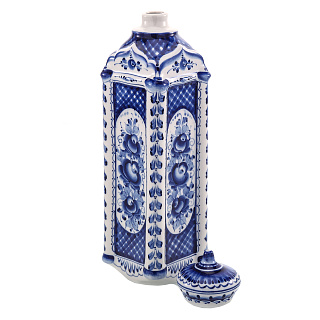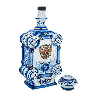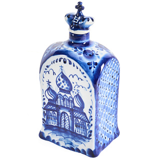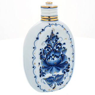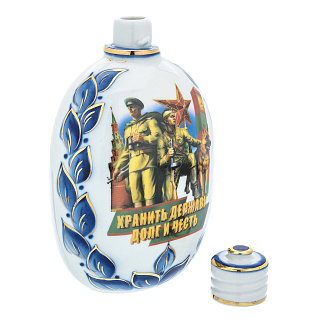 Фарфоровый штоф-фляжка 0,5 л «9 Мая». Гжель в цвете и золоте