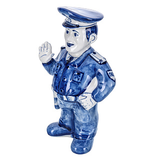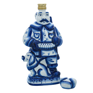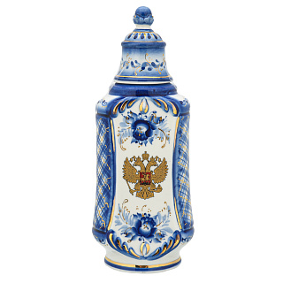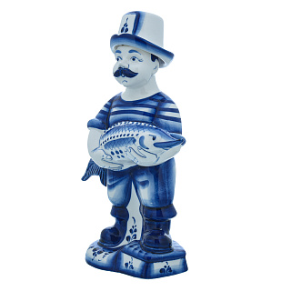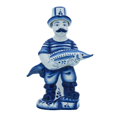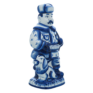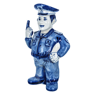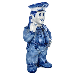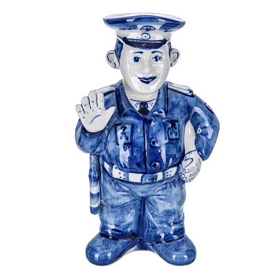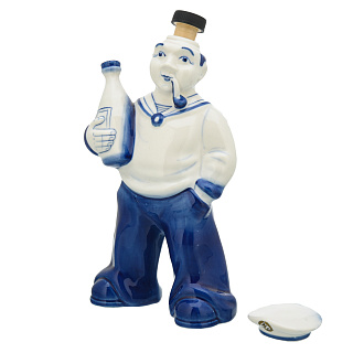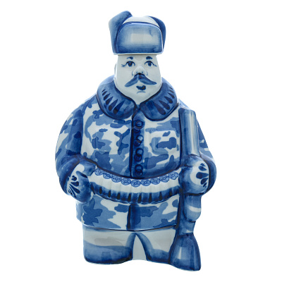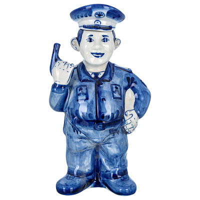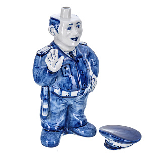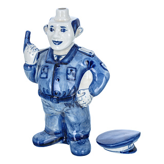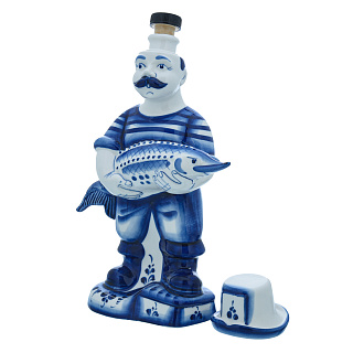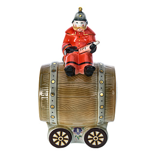 Штоф фарфоровый 700 мл «Пожарный на бочке». Гжель в цвете
