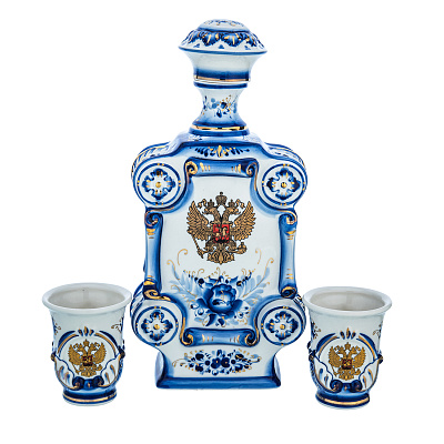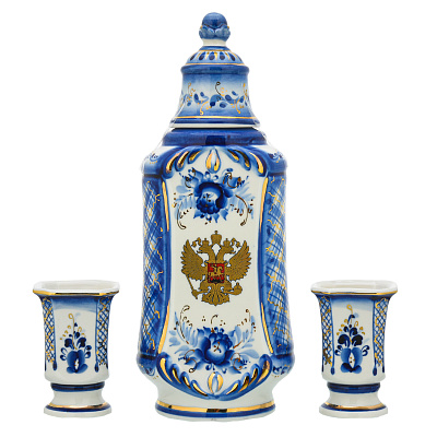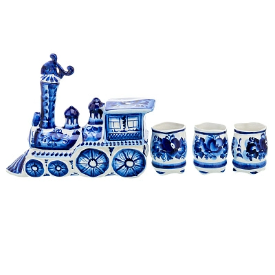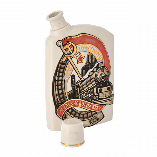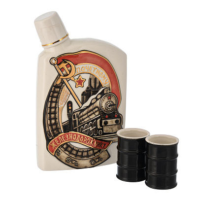 Штоф 500 мл со стопками «Почетному железнодорожнику». Гжель