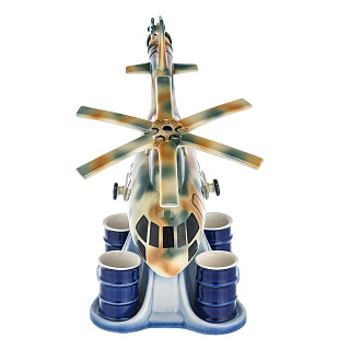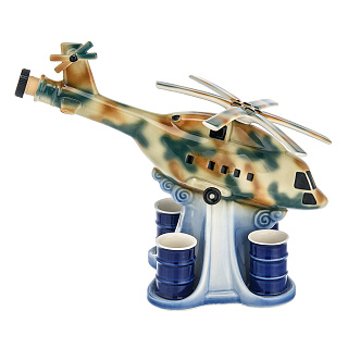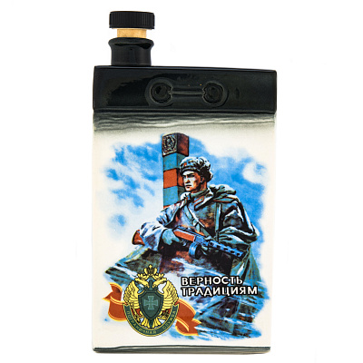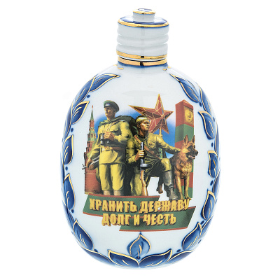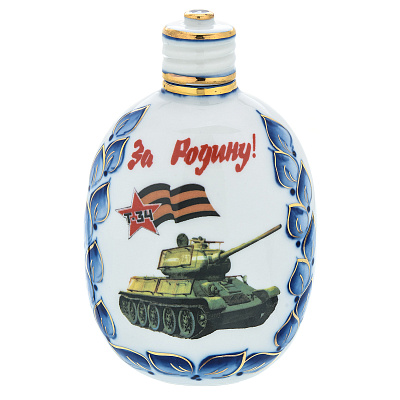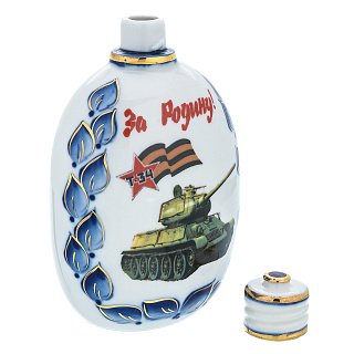 Фарфоровый штоф-фляжка 0,5 л «Танкисты». Гжель в цвете и золоте