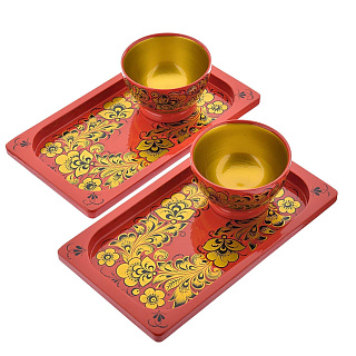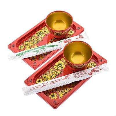 Набор для суши на двоих с соусниками и палочками. Роспись Хохлома