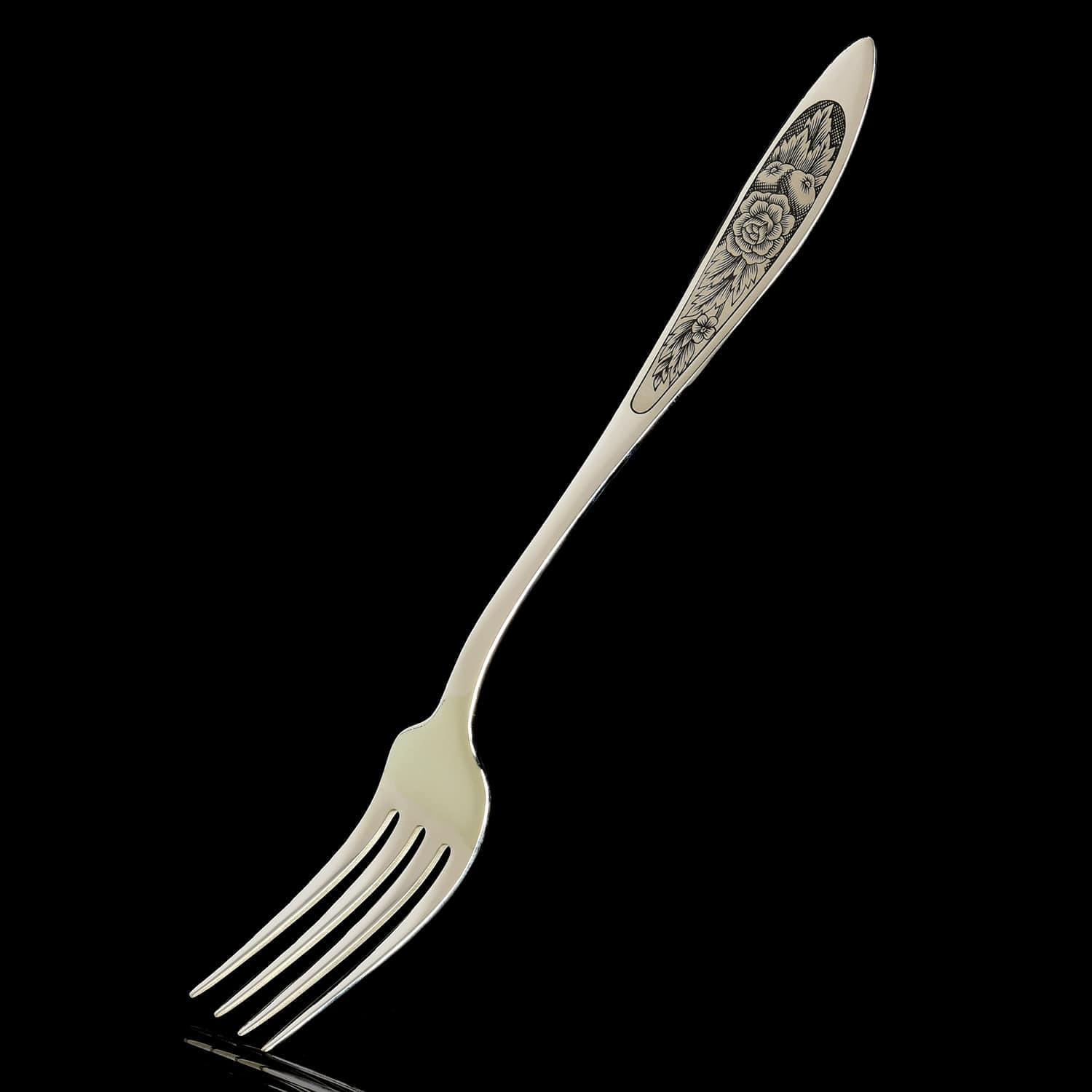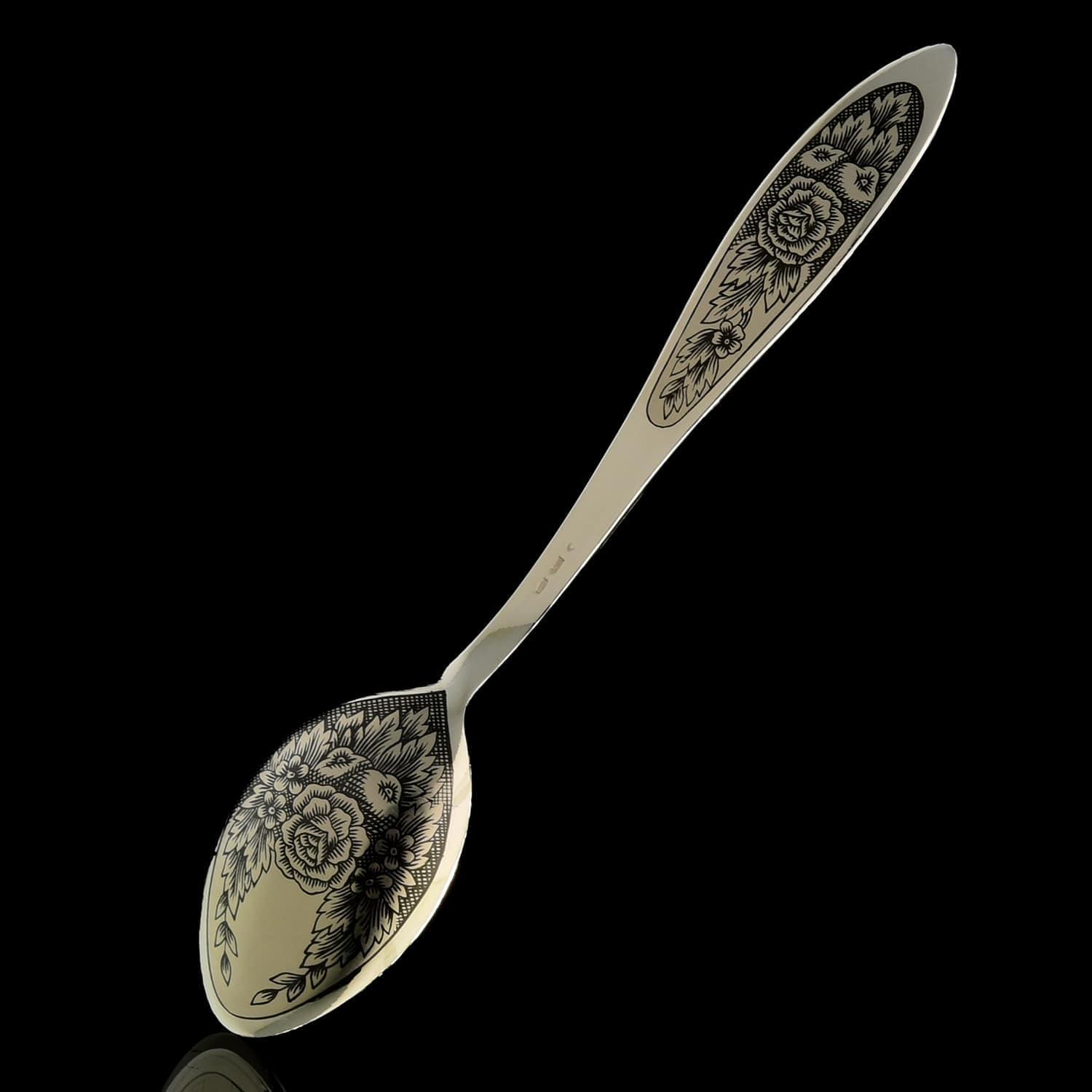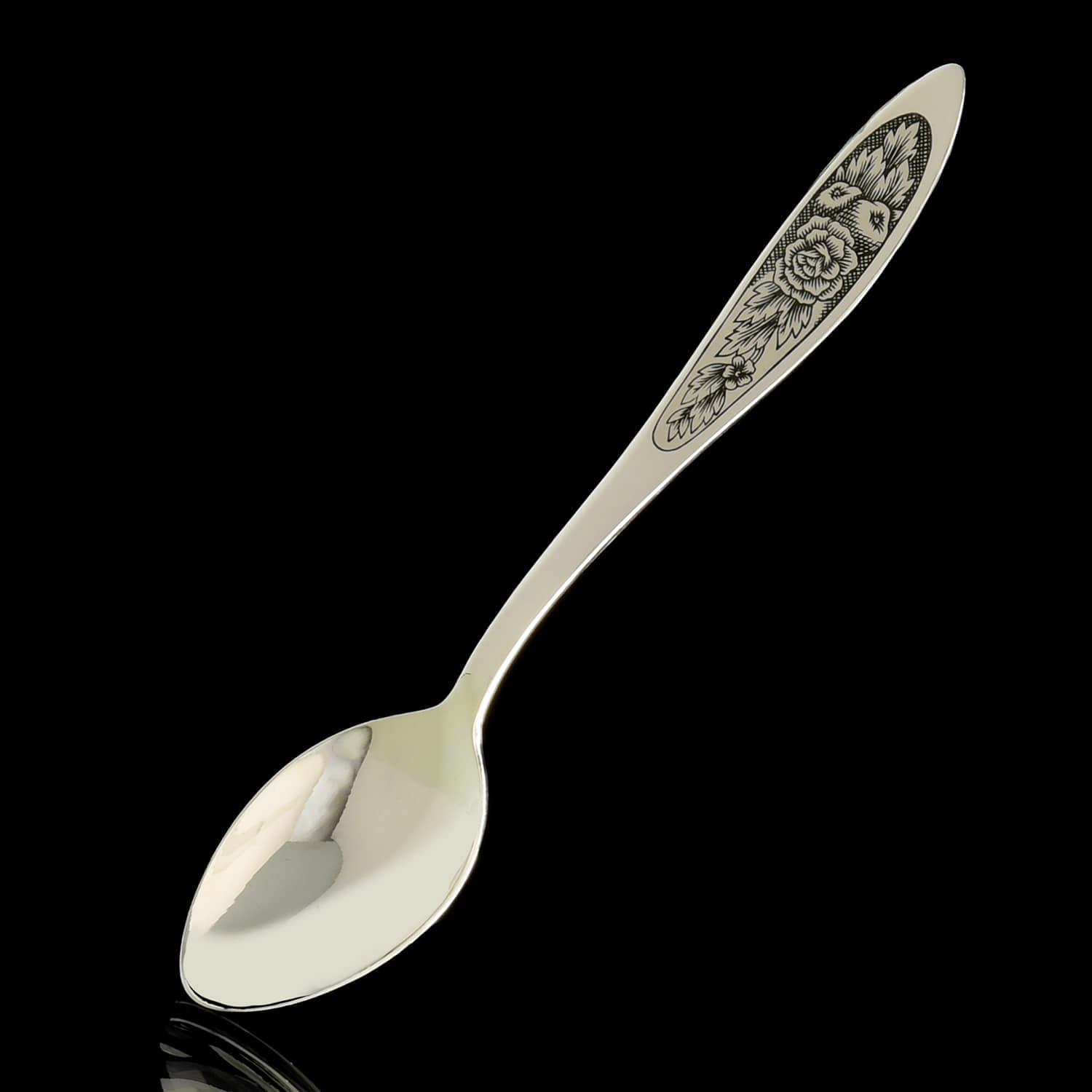 Серебро настолько тягучий, пластичный и ковкий металл, что легко режется ножом. Его использовали еще до нашей эры. В Сардинии серебро добывали и обрабатывали с эпохи раннего энеолита. В древности вавилоняне и ассирийцы считали его символом Луны и почитали как священный металл. В России он впервые был выплавлен в конце 17 века. Само слово переводится как «светлый»/«белый», восходит к древнеиндийскому «сарпа» - название Луны и древнего орудия земледельцев. Итальянский мореплаватель Себастьян Кабот встретил моряка, утверждавшего, что видел страну с горами серебра. Путешественник отправился искать его в Аргентину, но не нашел. Благодаря этой истории государство получило свое название. Самые большие запасы серебра находятся в Индии и в нейронах человеческого мозга. Согласно легендам, металл отпугивает вампиров, злых духов. На Руси в качестве первой валюты употребляли серебряные брусочки, которые рубили на части (отсюда и название «рубли»). В набор входят 24 предмета. Размеры: столовая ложка - 20,5 см. чайная ложка - 14,5 см. вилка - 20 см. нож - 22,5 см.