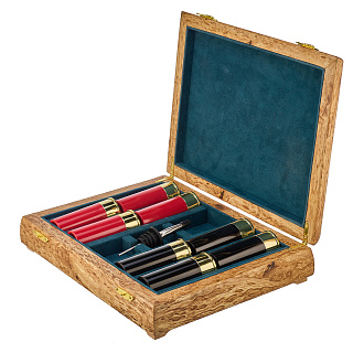 Набор стопок в шкатулке из карельской березы «Дальний кордон»