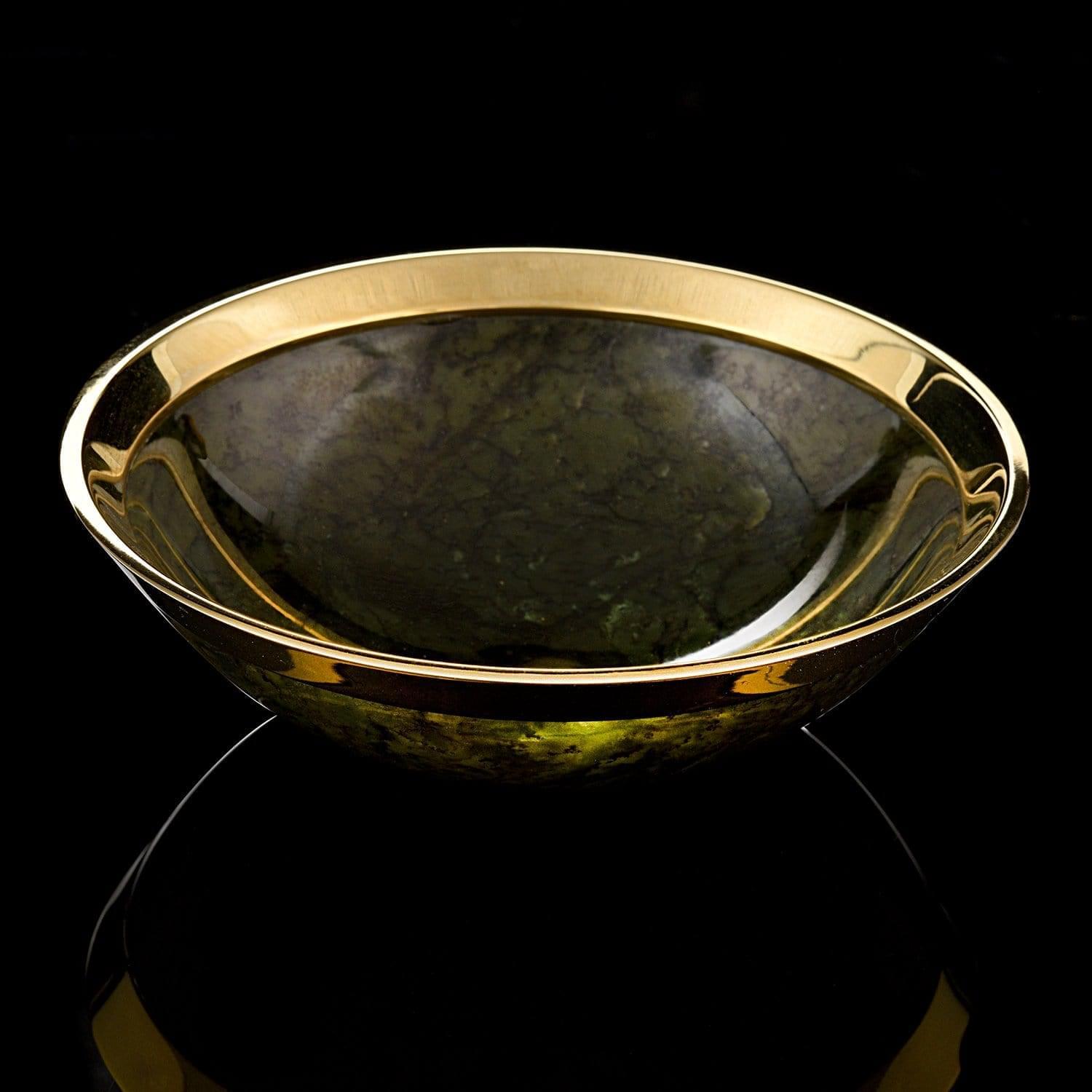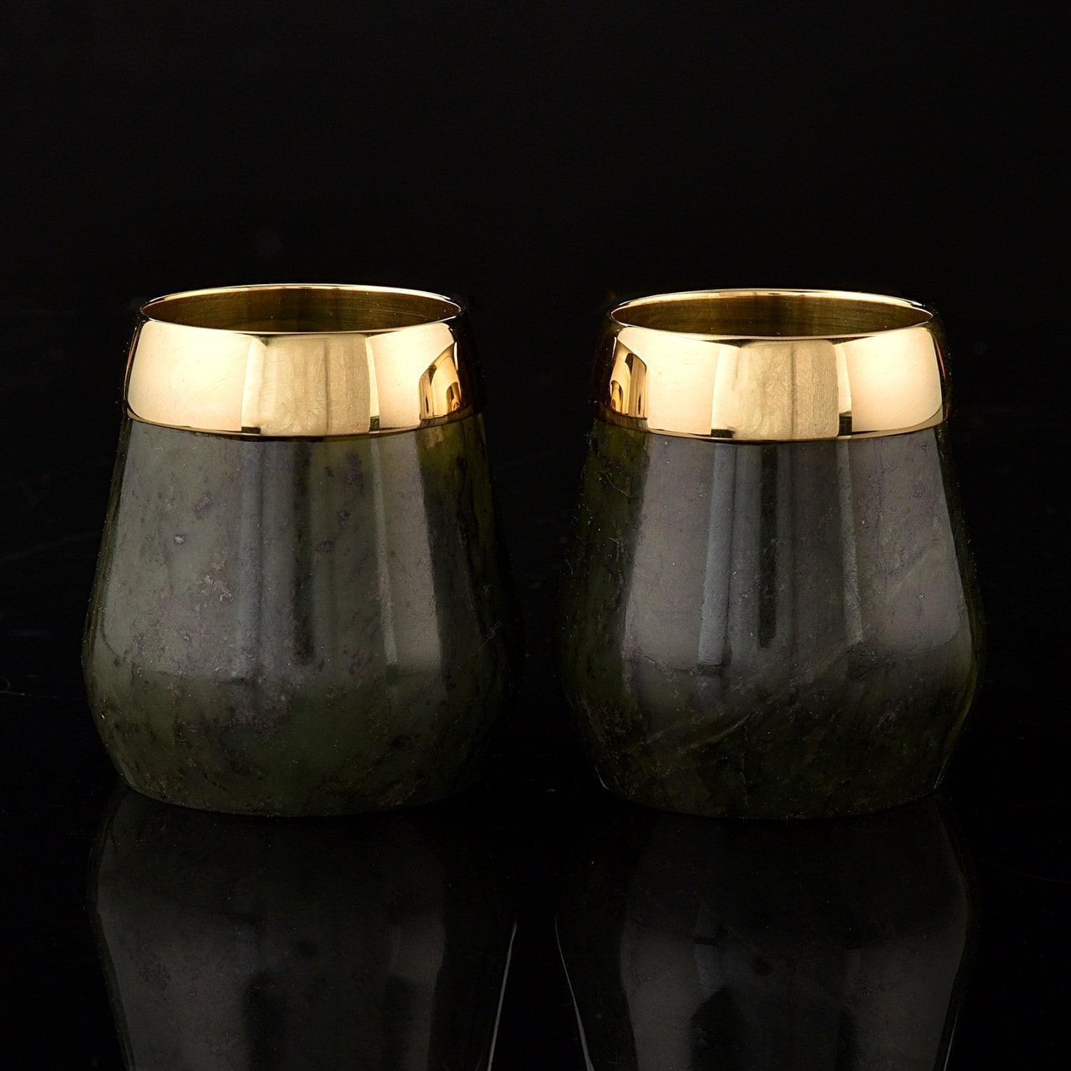 Чаша, стопки и подставка оформлены из самого твердого поделочного камня - нефрита. Этот камень с давних времен славится высокой прочностью и целебными качествами. В античности нефрит нередко использовался для создания амулетов, оберегов и предметов религиозного культа. Контакт с посудой или аксессуарами из нефрита нормализует кровяное давление, избавляет от усталости. .Нефрит довольно вязок и прочен на разрыв за счет своей особенной структуры. Именно поэтому нефрит с глубокой древности используется мастерами для создания ювелирных украшений, предметов быта.
