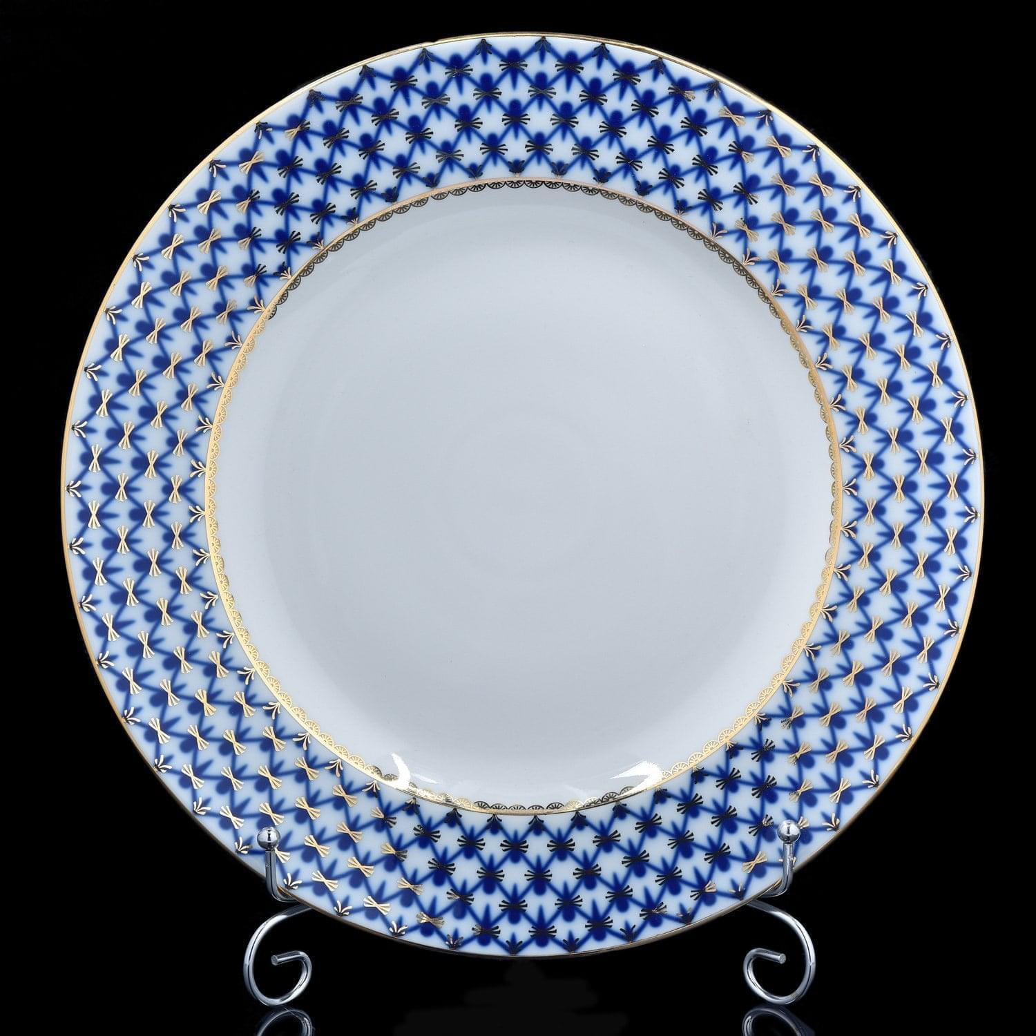 В технике надглазурной росписи выполнен декор посредством супер-краски, приготовленной мастерами ИФЗ на основе чистого золота.. Авторская работа, глубокая тарелка "Кобальтовая сетка" (форма "Европейская-2") - это красивый и практичный подарок на День рождения, новоселье, общий или личный праздник. Стильное решение для дома, кафе, ресторана.