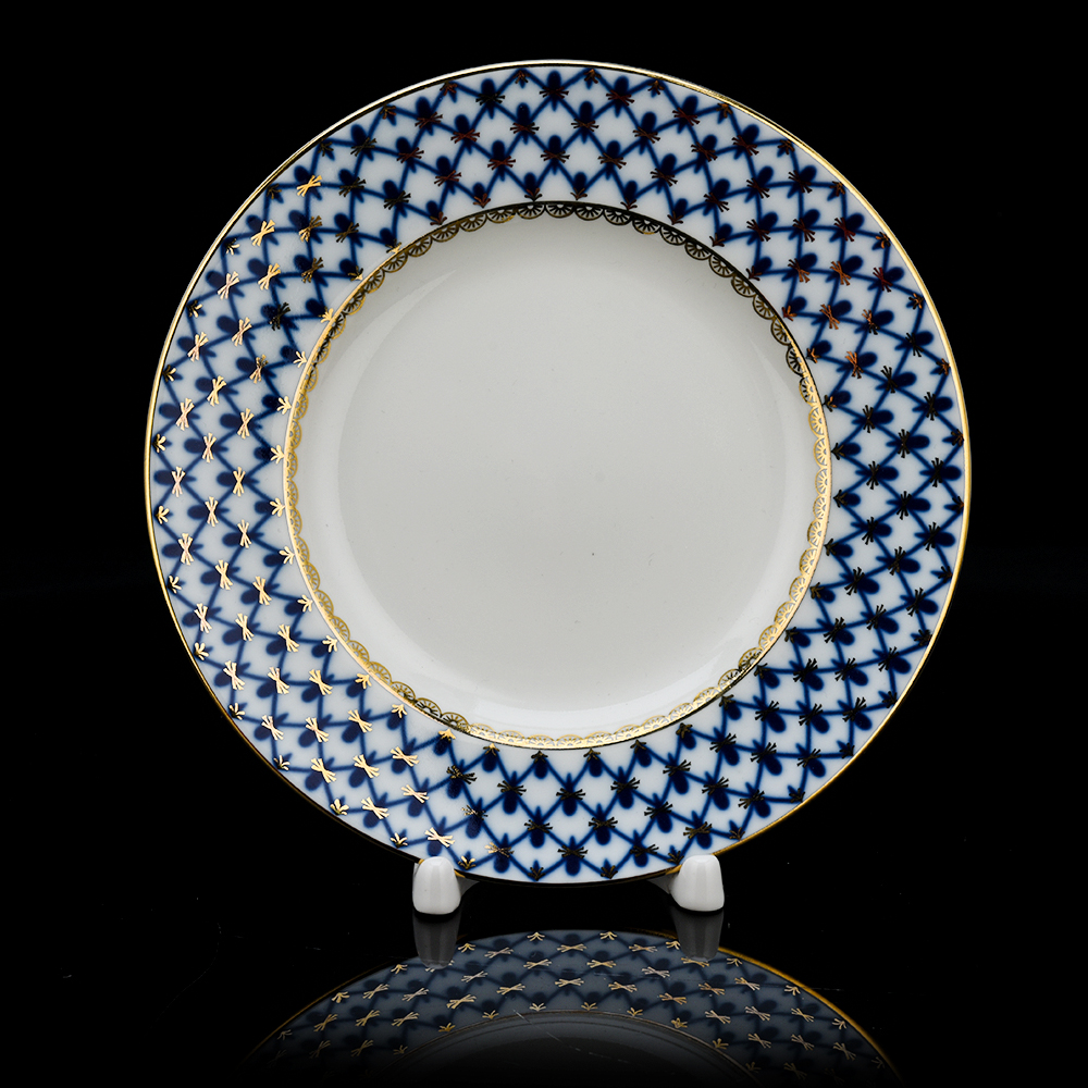 Тарелка "Кобальтовая сетка" изготовлена из простого, твердого фарфора. мелкозернистого и прозрачного. Она расписана вручную посредством окиси кобальта в техниках подглазурной и надглазурной росписи с использованием эффектной позолоты. Авторская тарелка "Кобальтовая сетка" также может стать прекрасным подарком и в качестве элемента декора украсить дом, оставить добрую память о дарителе.