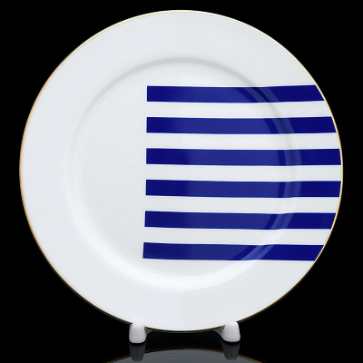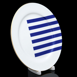 Слои прозрачной стеклянной глазури защищают фарфор от повреждения. Супер-краска, приготовленная на основе чистого золота, нанесена тонкой кистью в технике надглазурной росписи. Авторская работа, тарелка "Сетка-Блюз 2" положит начало личной коллекции посуды ручной работы и будет еще одним стильным приобретением для дома, кафе, ресторана.