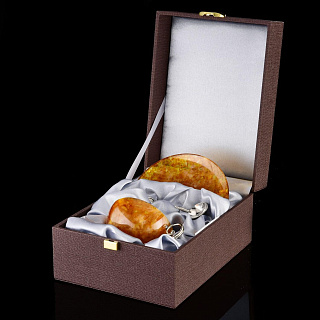 Деликатесный набор из янтаря «Шар». Ювелирная бронза