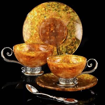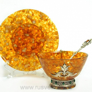 Посуда из янтаря высоко ценится — сам камень янтарь, как известно, считается особым и обладающим многими чудесными свойствами. А когда вы приобретаете посуду из янтаря, то ваша пища будет соприкасаться с камнем и обретать новые дополнительные качества.