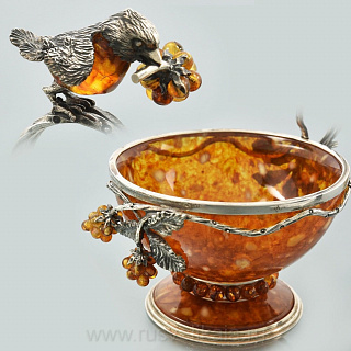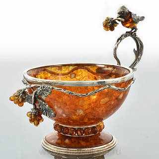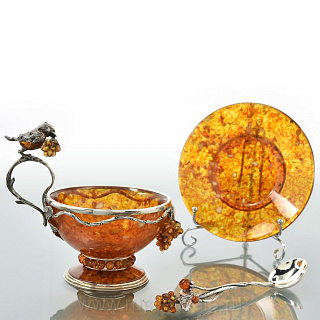 Чайная пара из янтаря «Виноград». Серебро 875*