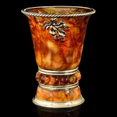 Стопка из янтаря «Вишневый сад». Серебро 875*