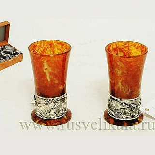 Набор стопок из янтаря «Виноград». Серебро 875*