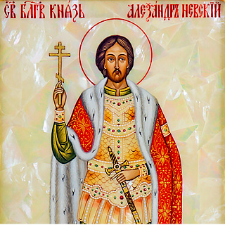 Икона «Александр Невский» с перламутром 19 х 29 см