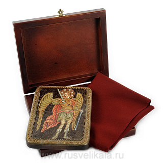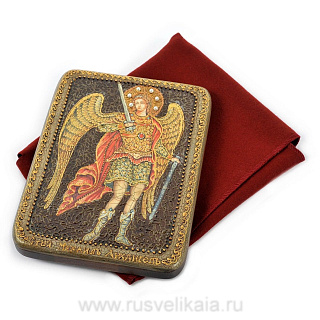 Икона подарочная«Архангел Михаил»(житие). Морёный дуб. 30 х 37 см.