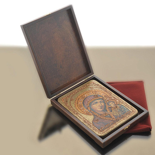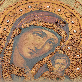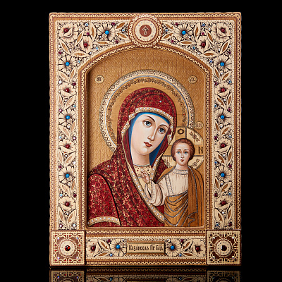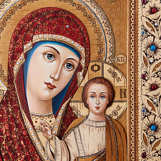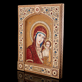 Икона с перламутром «Божья Матерь Казанская» в киоте 29х24 см