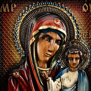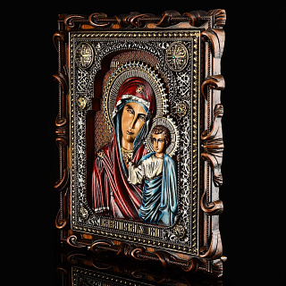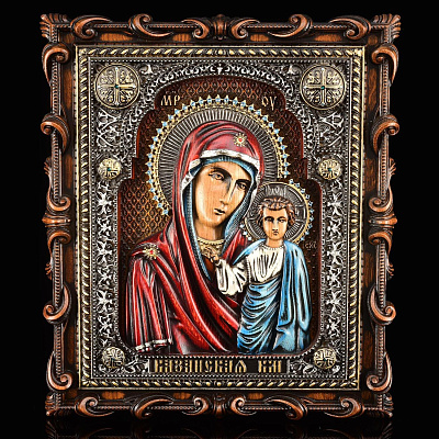Деревянная резная икона «Казанская Божья Матерь» 32х23 см