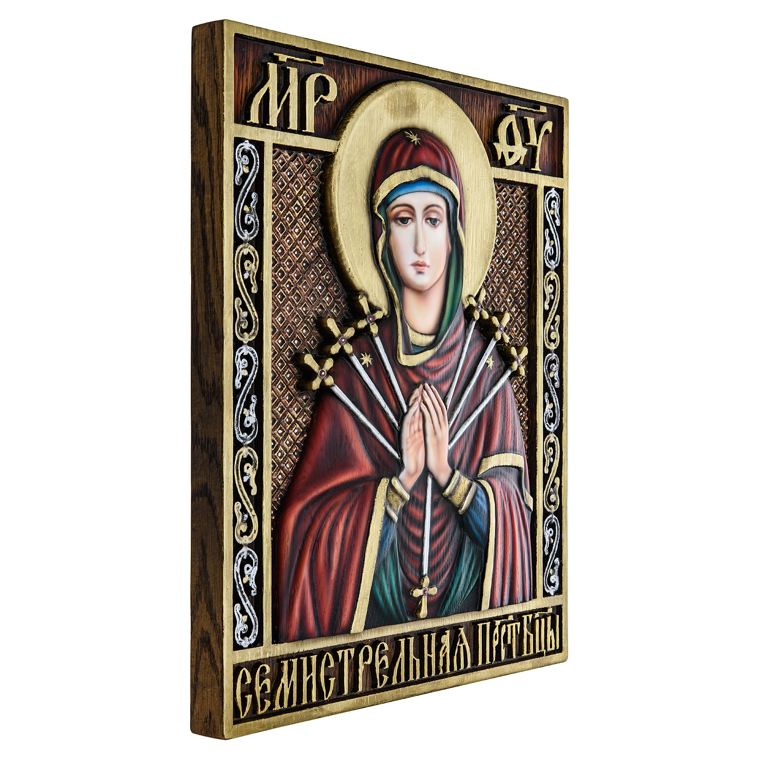 Деревянная резная икона "Божья Матерь Семистрельная".
