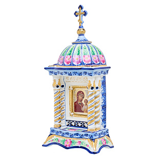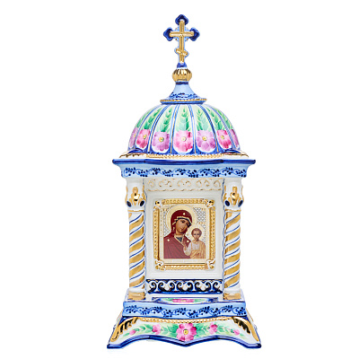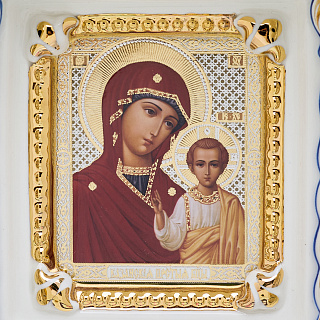 Киот настольный «Божья Матерь Казанская». Гжель 12х26 см
