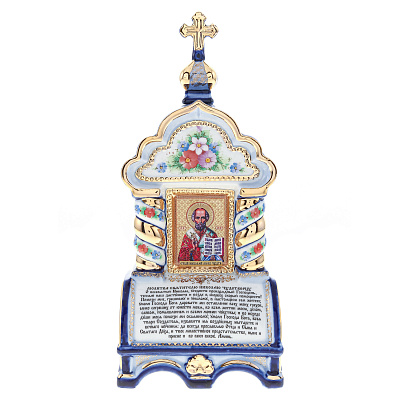 Киот настольный «Спиридон Тримифунтский». Гжель 5х10 см