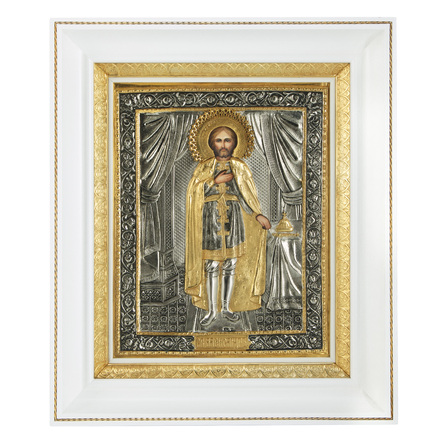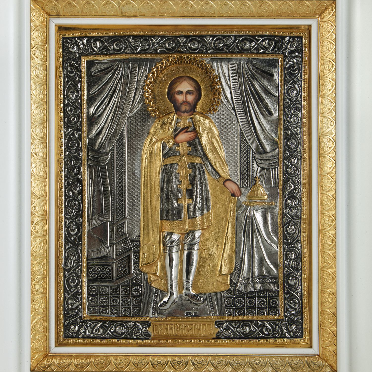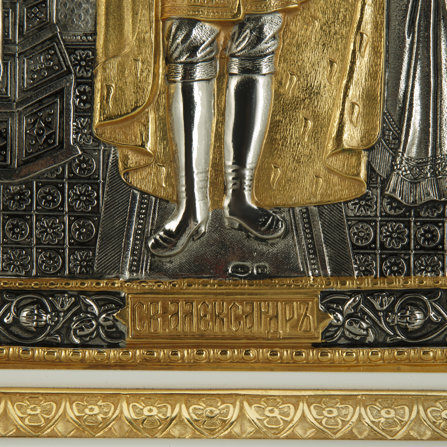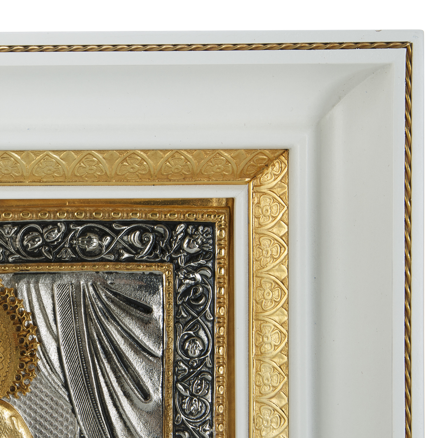 Икона является произведением ручной работы. Оклад выполнен из меди, обработанной в технике гальванопластики, с гальваническим покрытием золотом и серебром. Киот резной, изготовлен из массива лиственных пород древесины с покрытием атмосферостойким лаком.