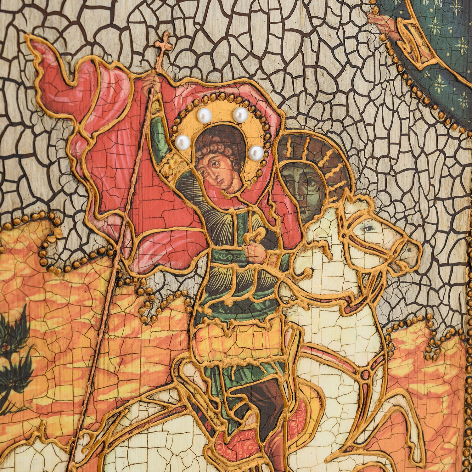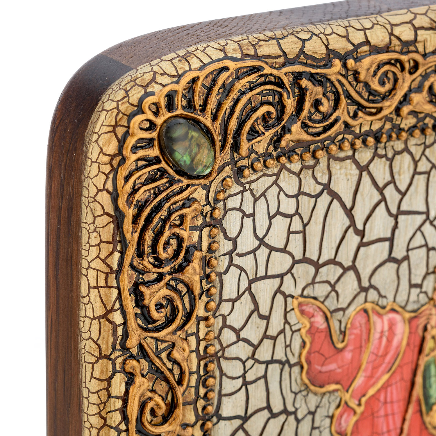 Материалы: мореный дуб, краски, жемчуг, гелиотис.