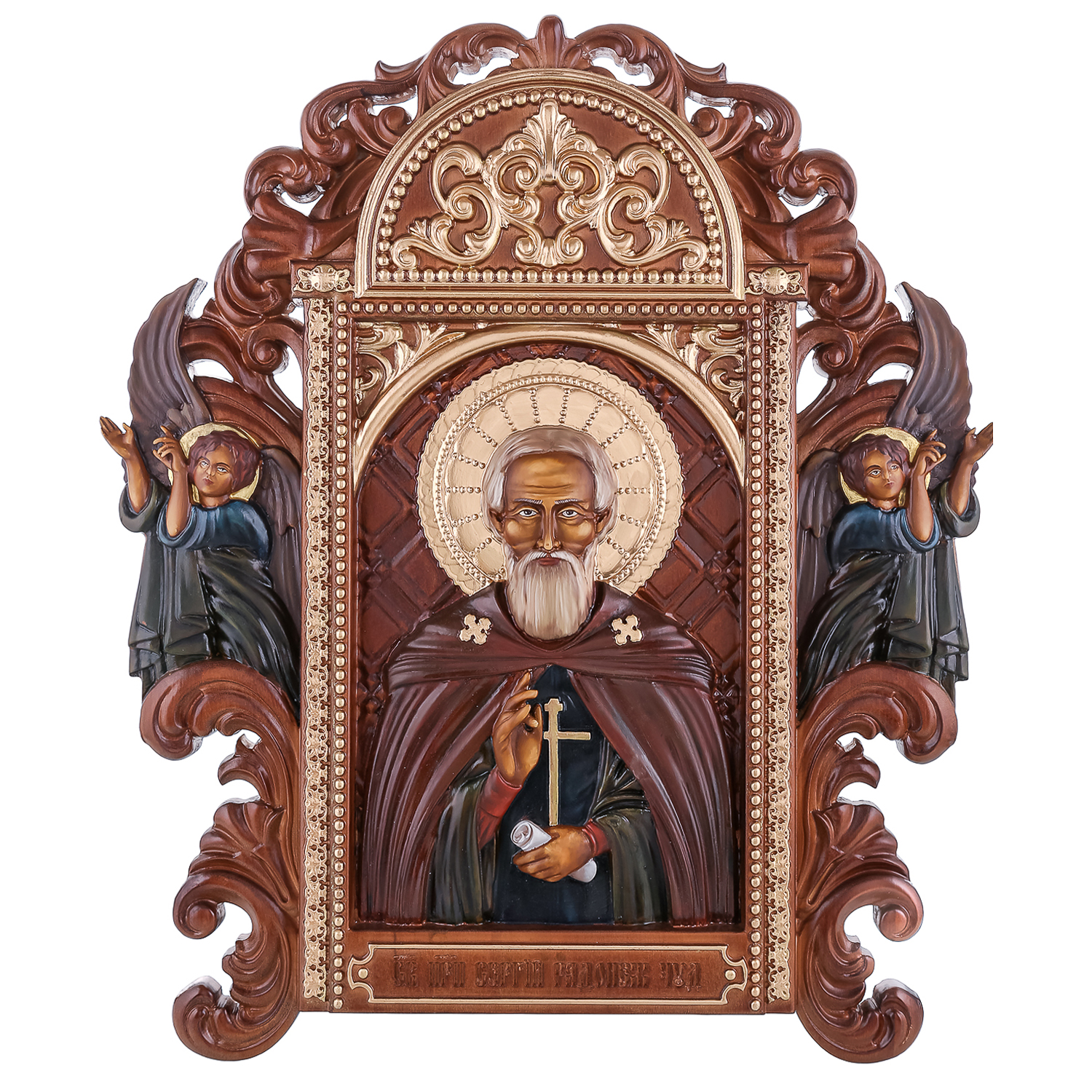 Деревянная резная икона «Казанская Божья Матерь» 32х23 см
