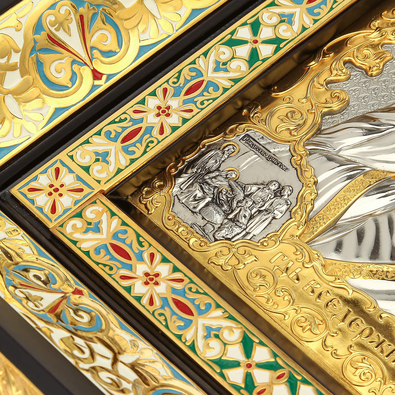 Икона является произведением ручной работы с применением золочения и серебрения методом гальваники и покрытием холодной эмалью. Изображение выполнено по технологии литографии. Оклад выполнен из меди, обработанной в технике гальванопластики. Киот резной, изготовлен из массива лиственных пород древесины с четырехслойным покрытием атмосферостойким лаком.