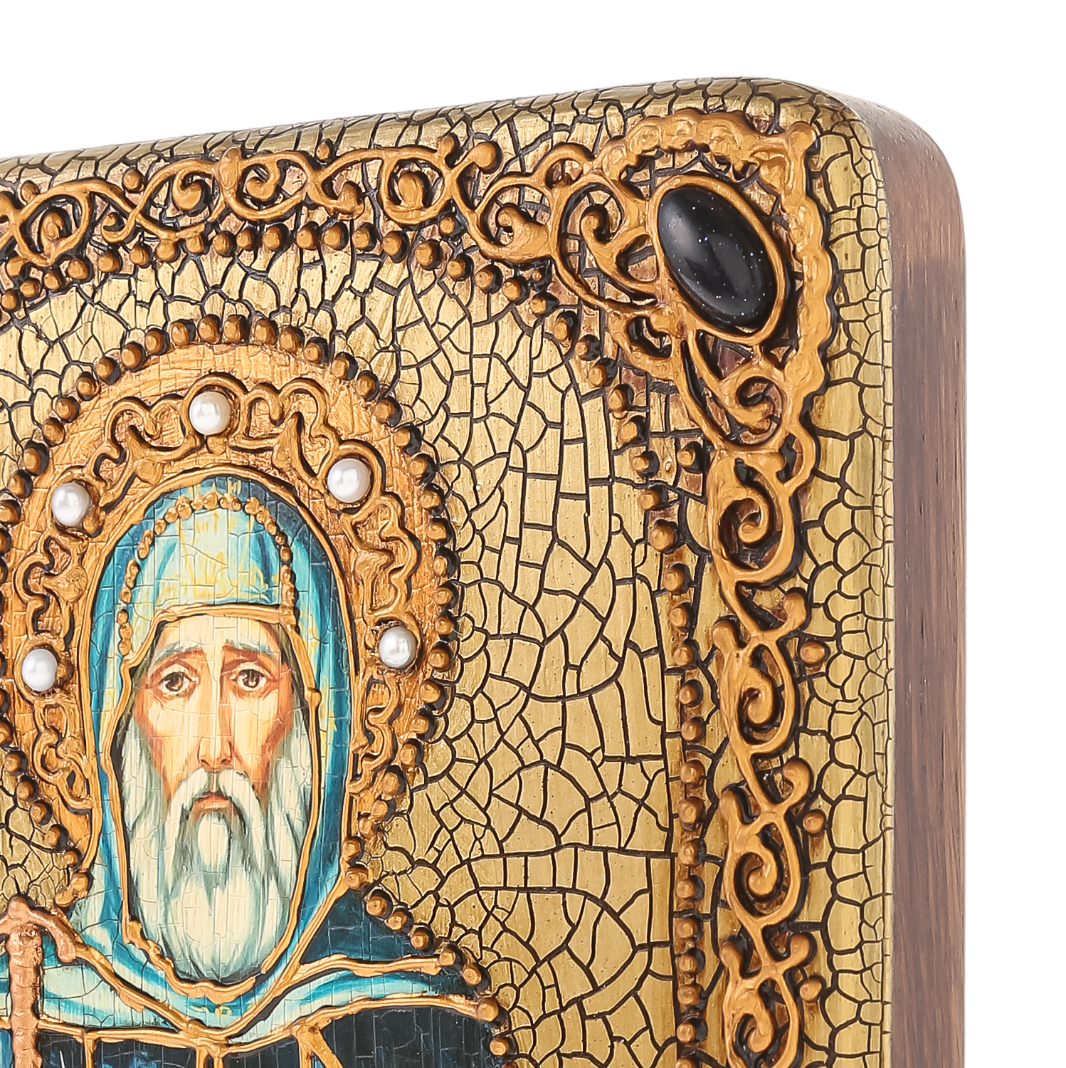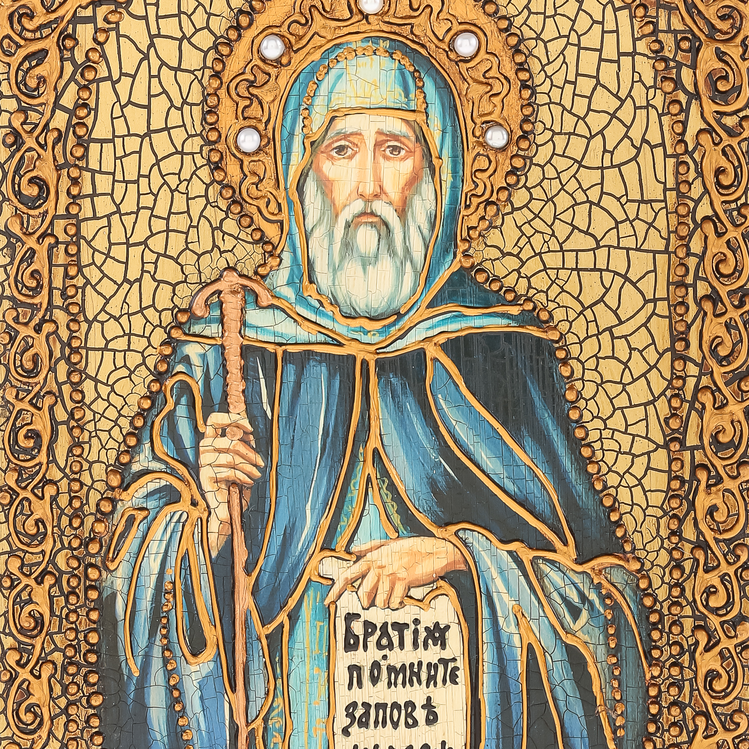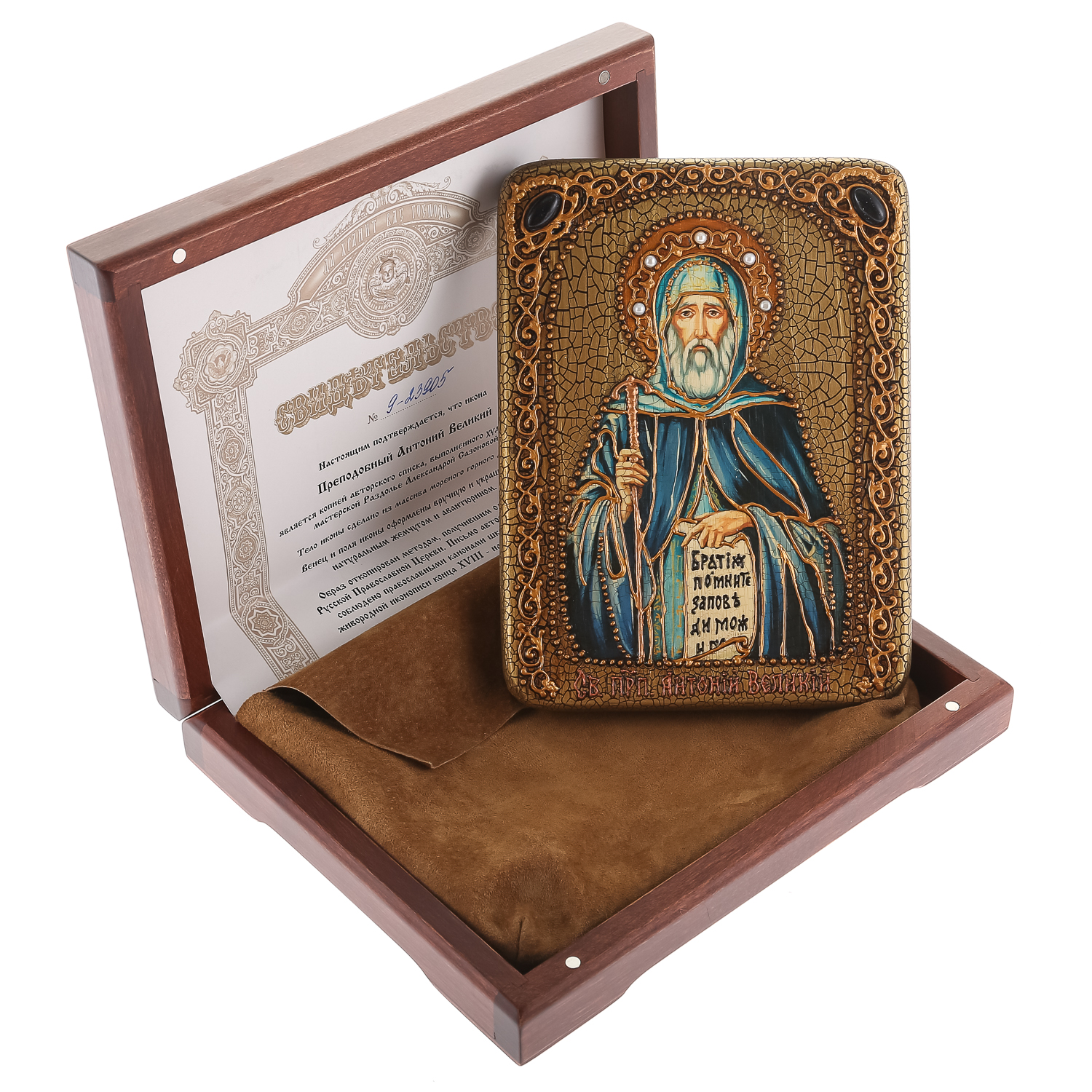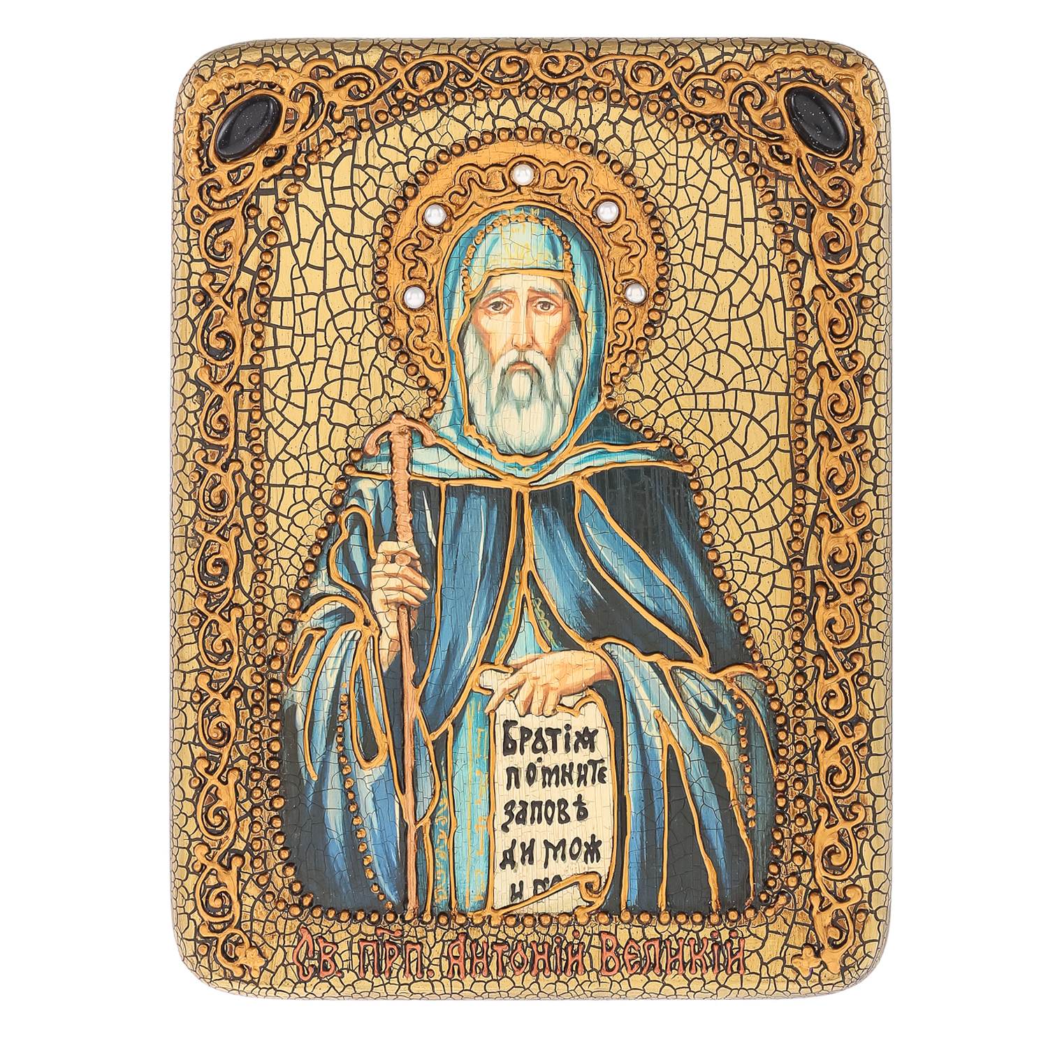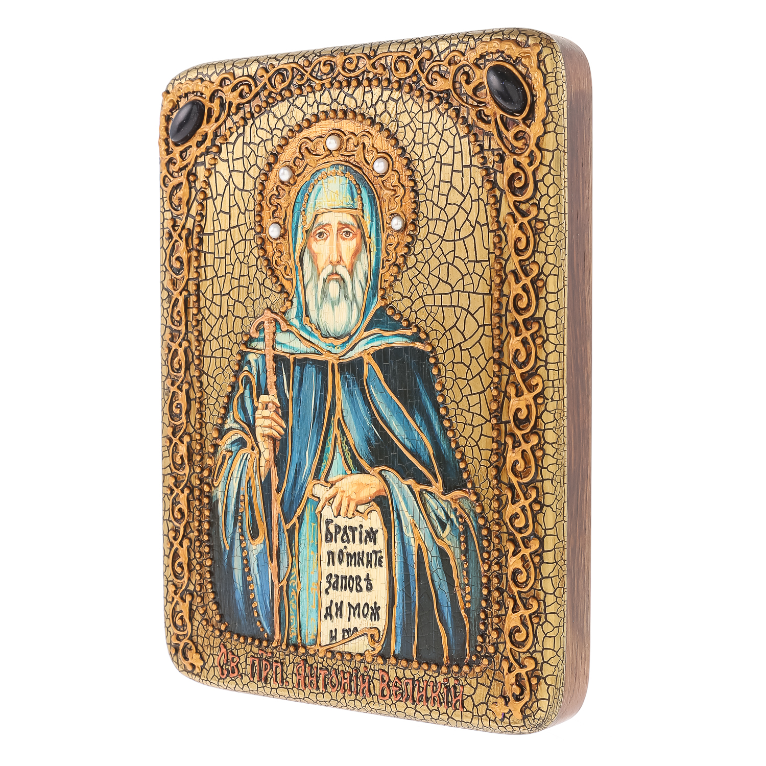 Икона из мореного дуба "Преподобный Антоний Великий".