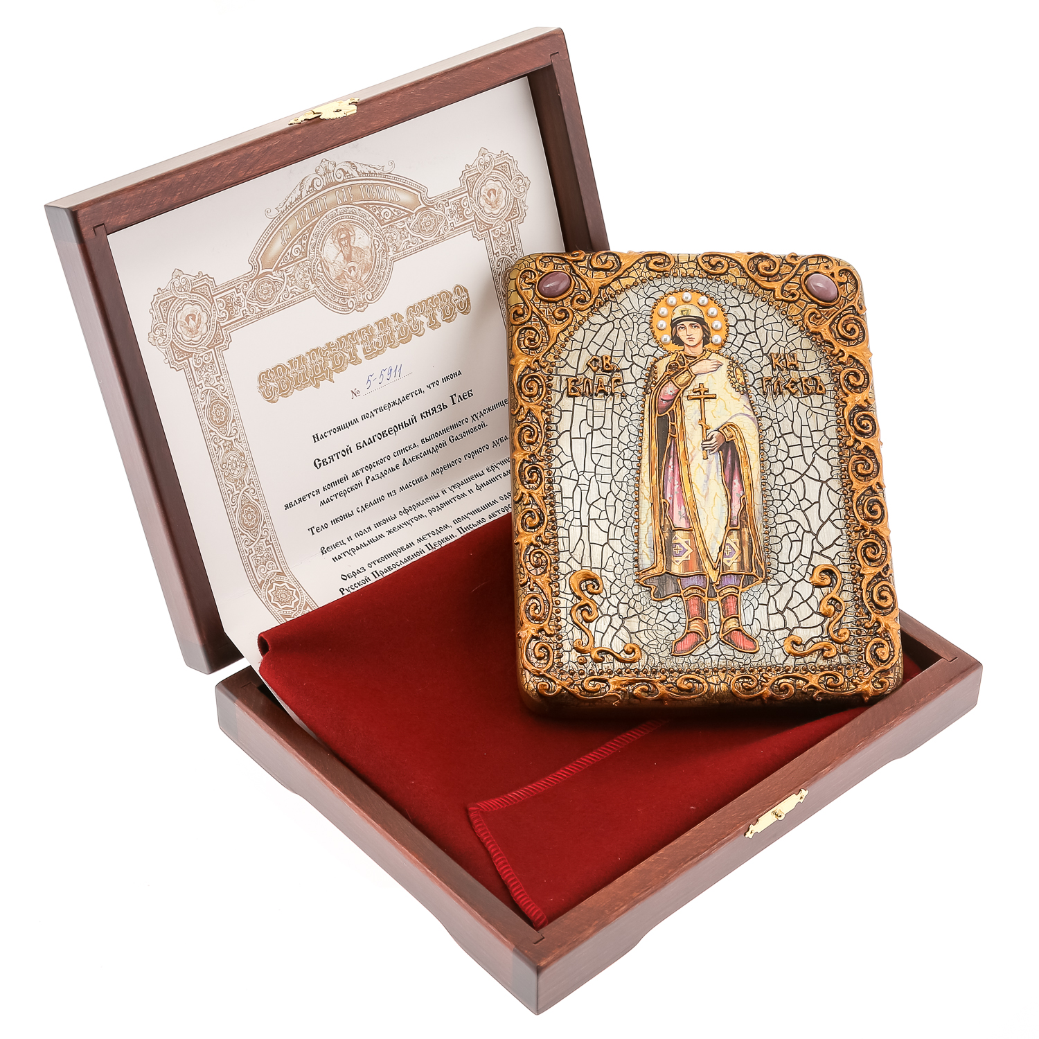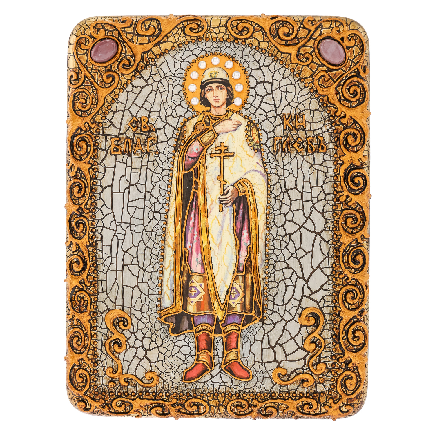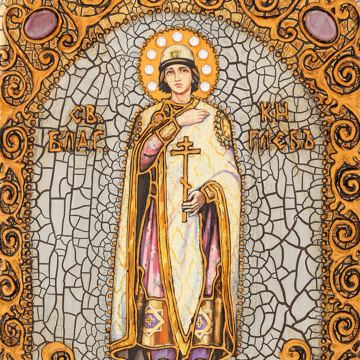 Икона из мореного дуба "Святой благоверный князь Глеб".