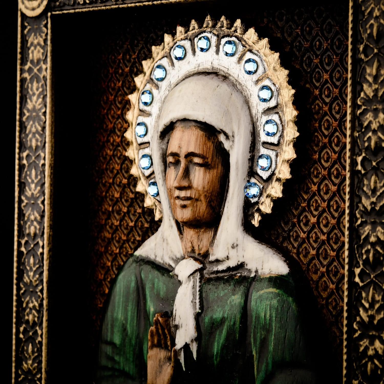 Матрона Московская одна из самых почитаемых святых Русской православной церкви. В миру Матрона Димитриевна Никонова, родилась в 1881, 1883 или 1885 году, в Тульской губернии в семье крестьян. Слепую девочку хотели оставить в приюте князя Голицына, но матери приснился сон: белая слепая птица села на ее грудь. Мама решила, что сон вещий, и оставила ребенка.