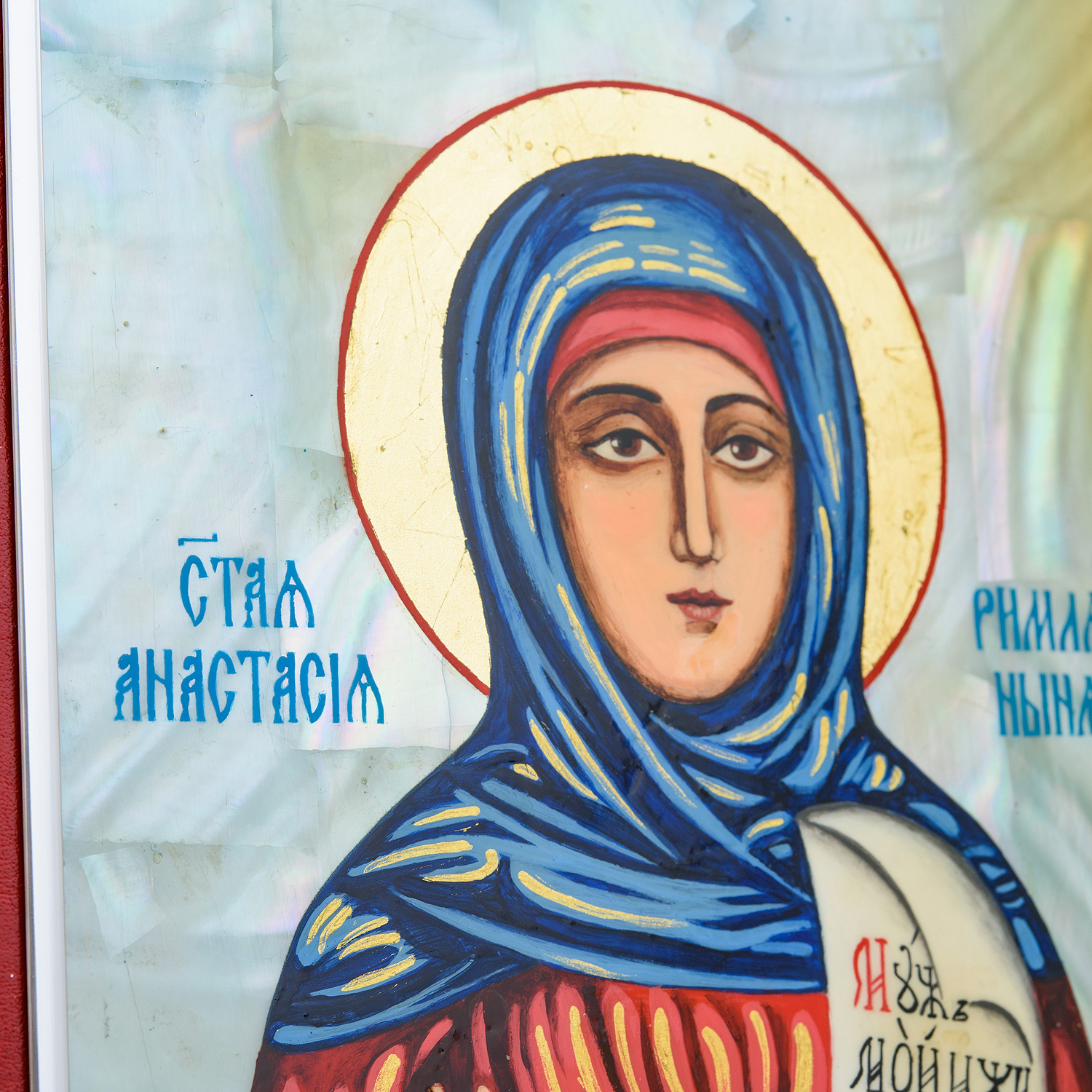 Икона на перламутре «Святой мученик Евгений» 35х30 см