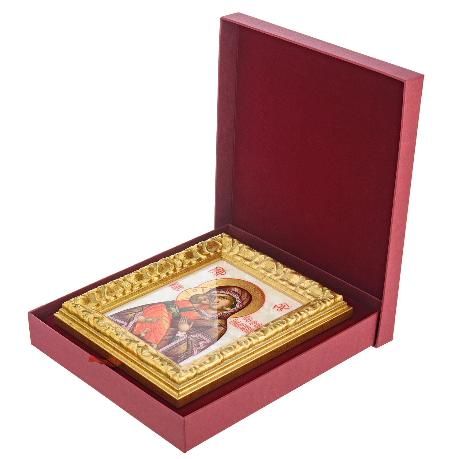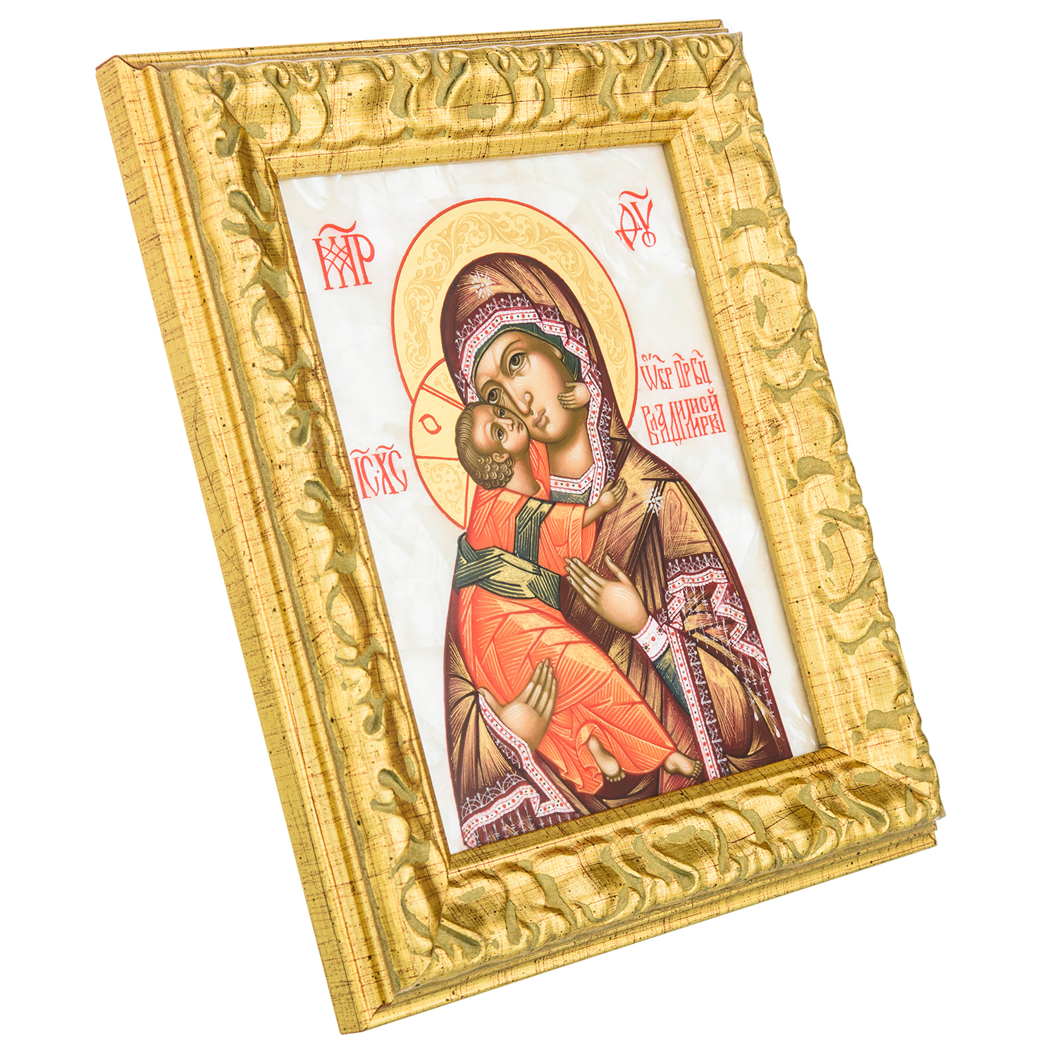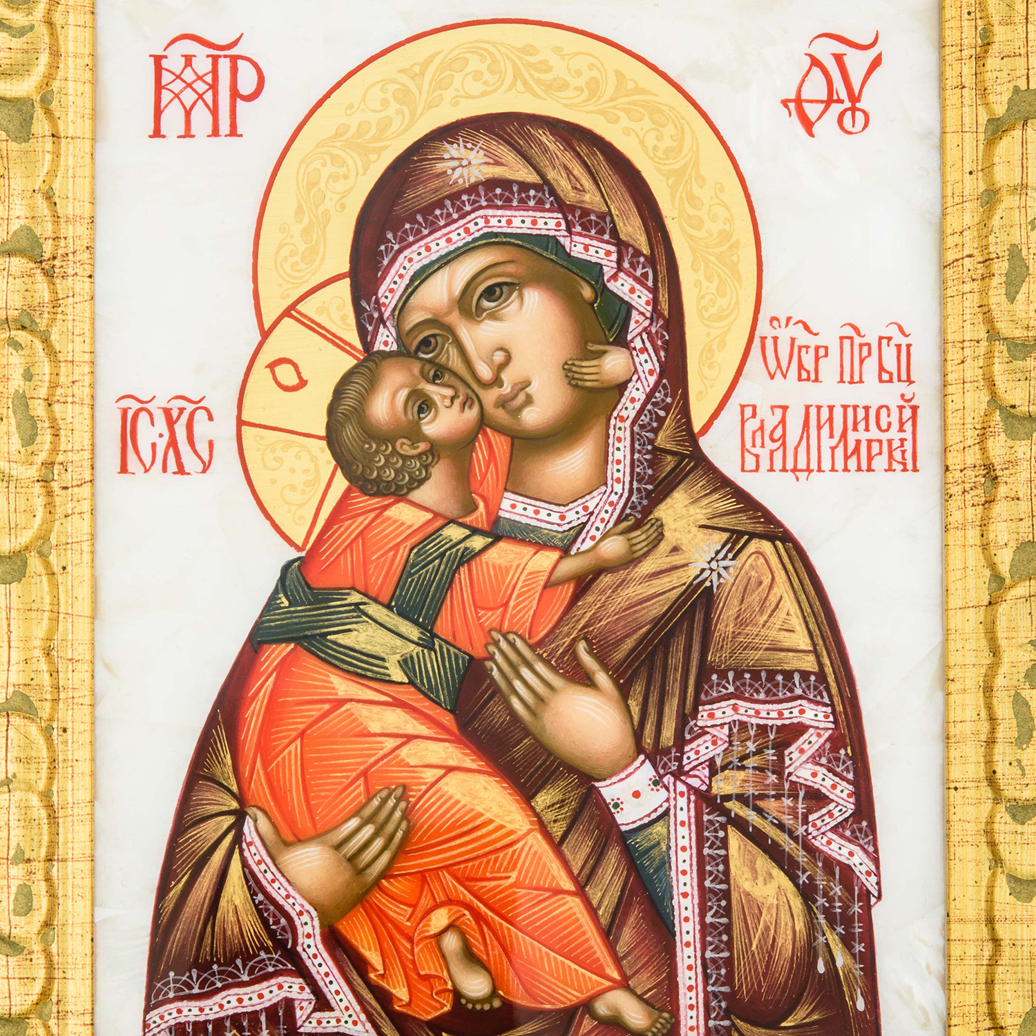 Икона на перламутре "Владимирская Божья Матерь".