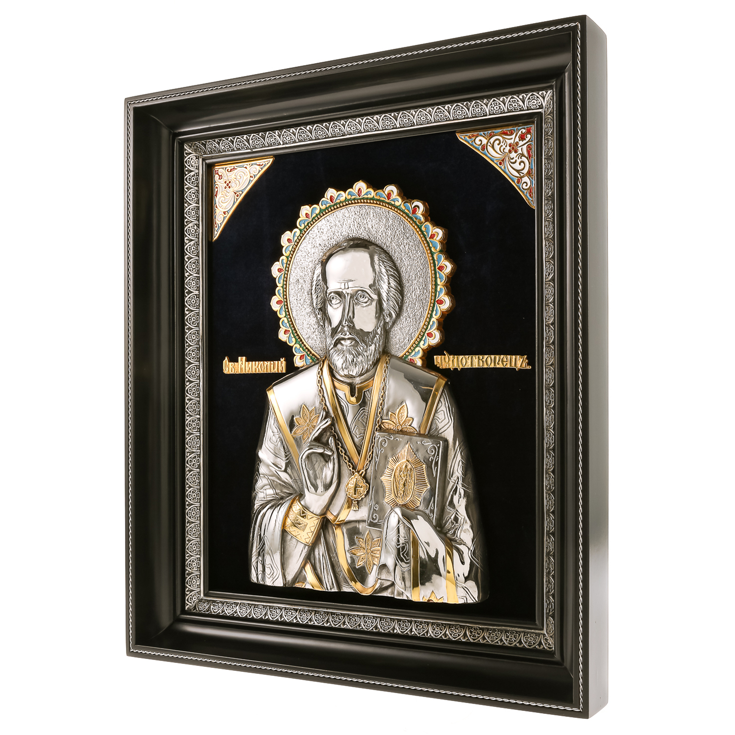 Икона изготовлена Крымскими мастерами с благословлением Митрополита Симферопольского и Крымского Лазаря. Икона является произведением ручной работы. Оклад выполнен из меди, обработанной в технике гальванопластики, с гальваническим покрытием золотом и серебром. Киот резной, изготовлен из массива лиственных пород древесины и покрытием атмосферостойким лаком.