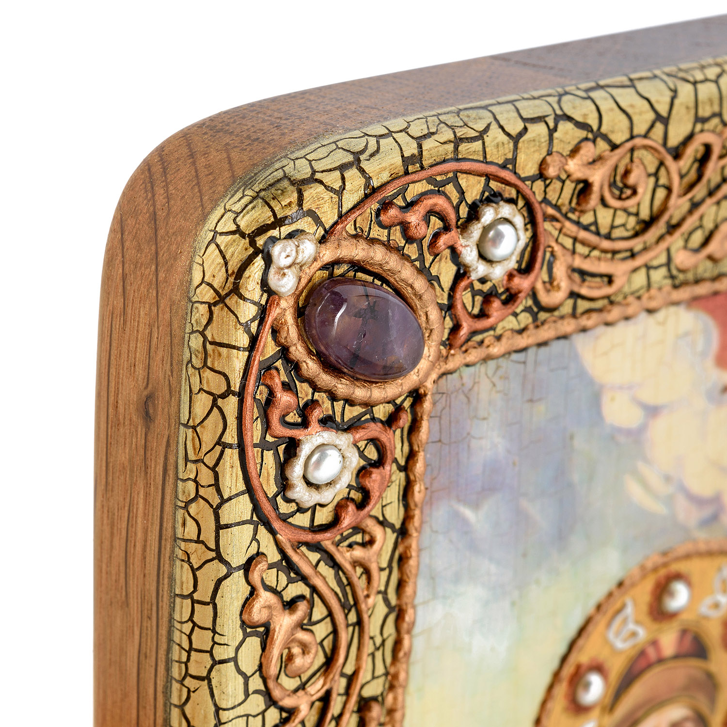 Материалы: мореный дуб, краски, жемчуг, аметист.
