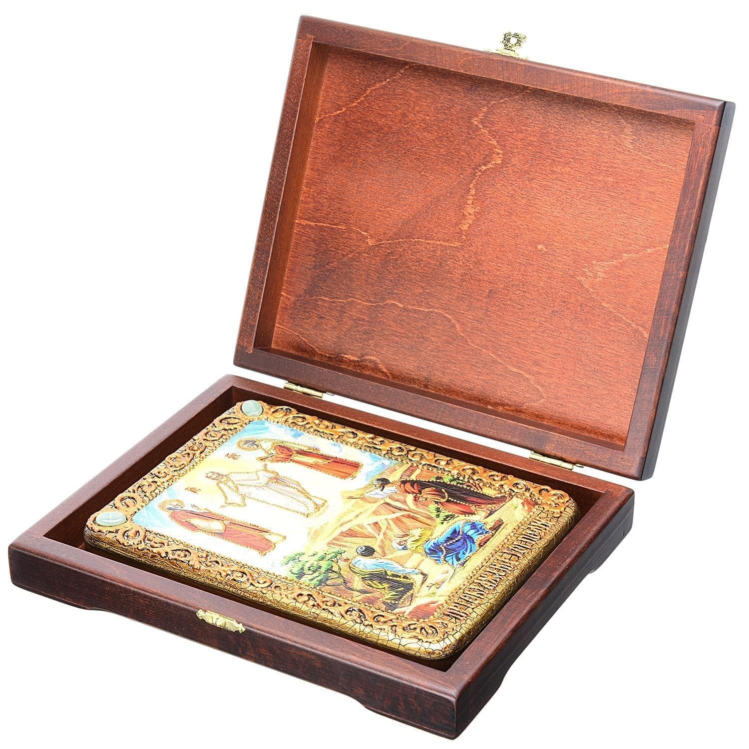 Образы на иконах созданы российским иконописцем на массиве мореного дуба возрастом пару тысячелетий. Икона оформлена в соответствии с православными канонами и традициями русско-византийской иконописи в стиле олд -модерн, с винтажным эффектом.