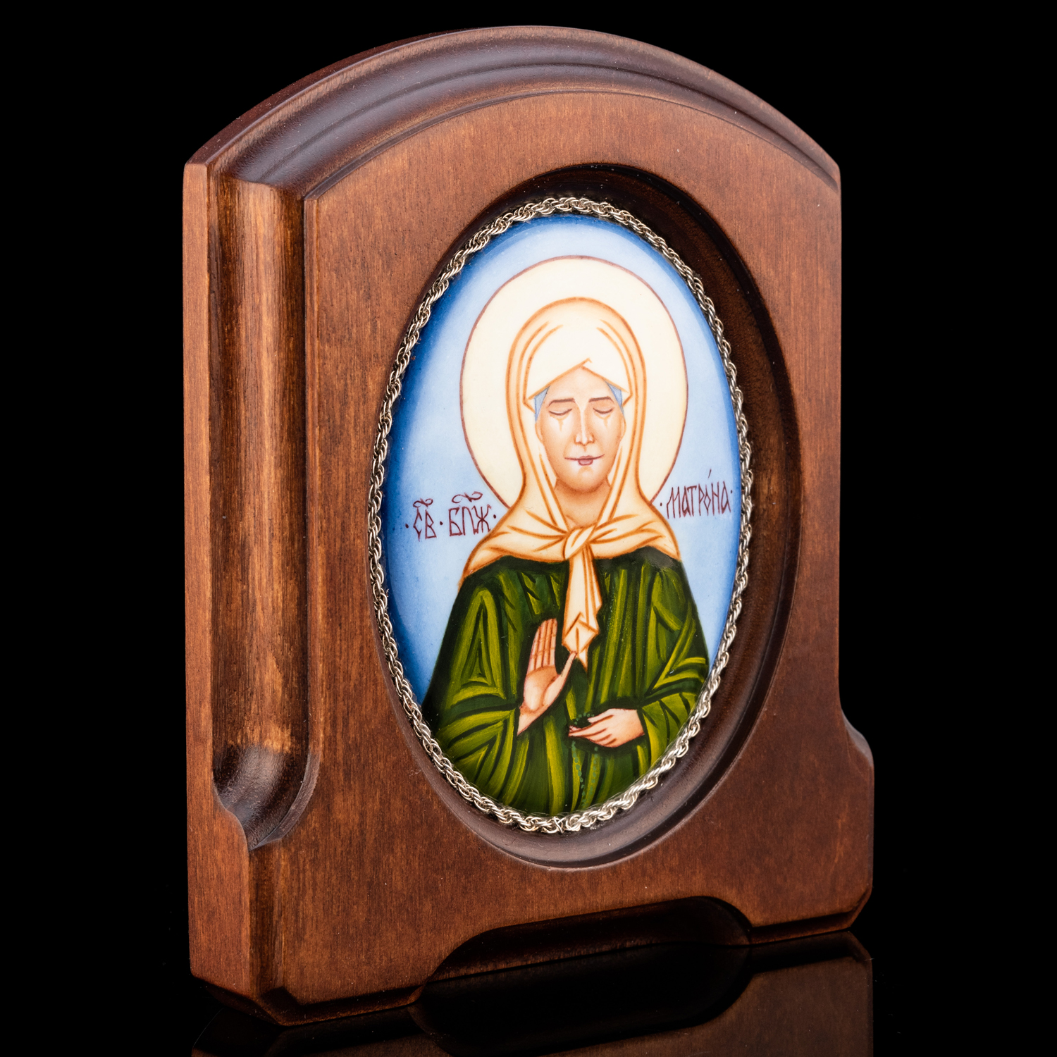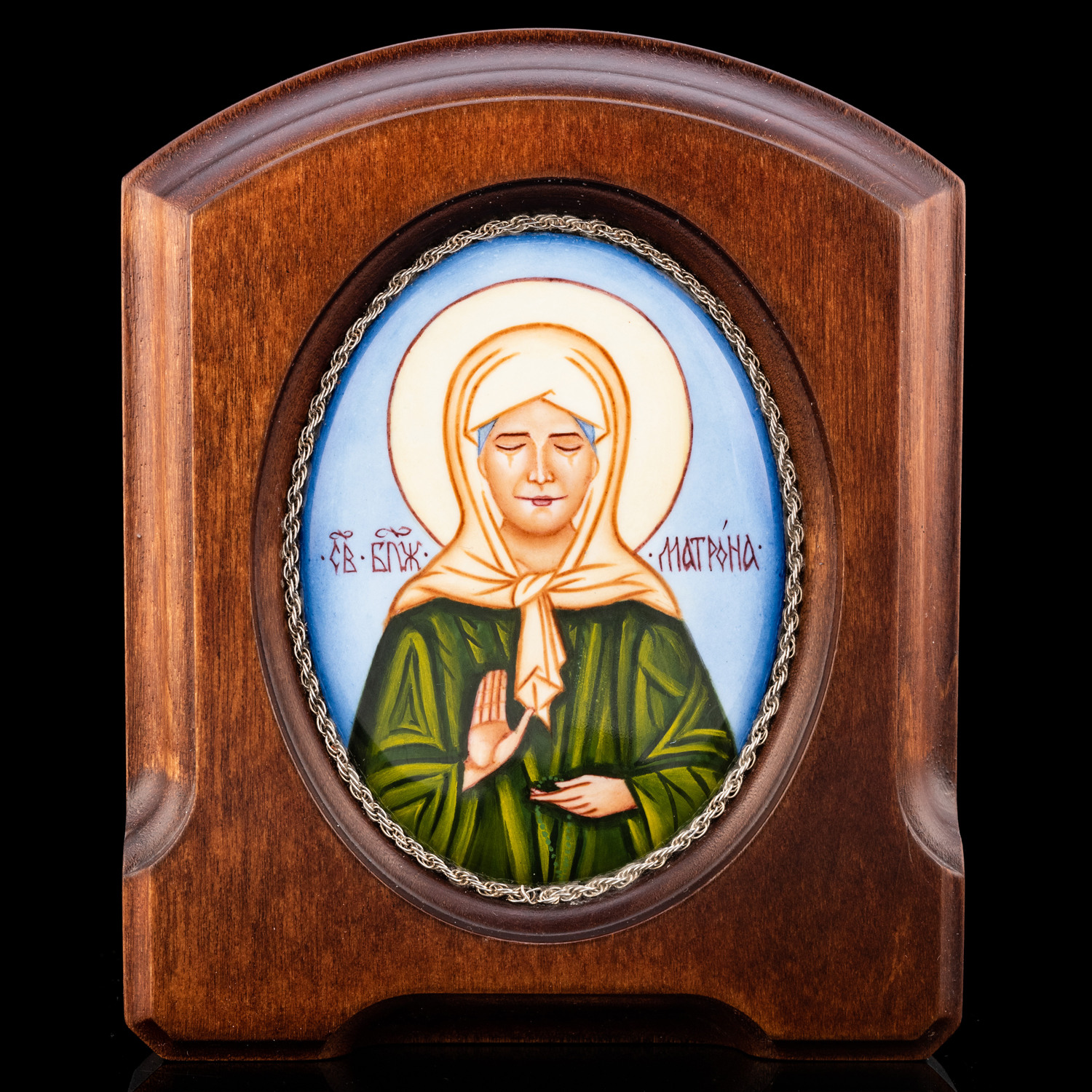 Икона с финифтью «Святая блаженная Матрона Московская» – превосходный образец православного творчества. Ей молятся в болезнях и жизненных неурядицах, когда сталкиваются с проблемами на работе, учёбе или в быту. Икона с финифтью – изображение на металлической основе, покрытое тонким слоем стекловидной эмали и запечённое при высокой температуре. Поэтому она так великолепно блестит. Икона выполнена и расписана талантливым мастером вручную. Поэтому хранит в себе не только Божью благодать, но и тепло человеческой души.